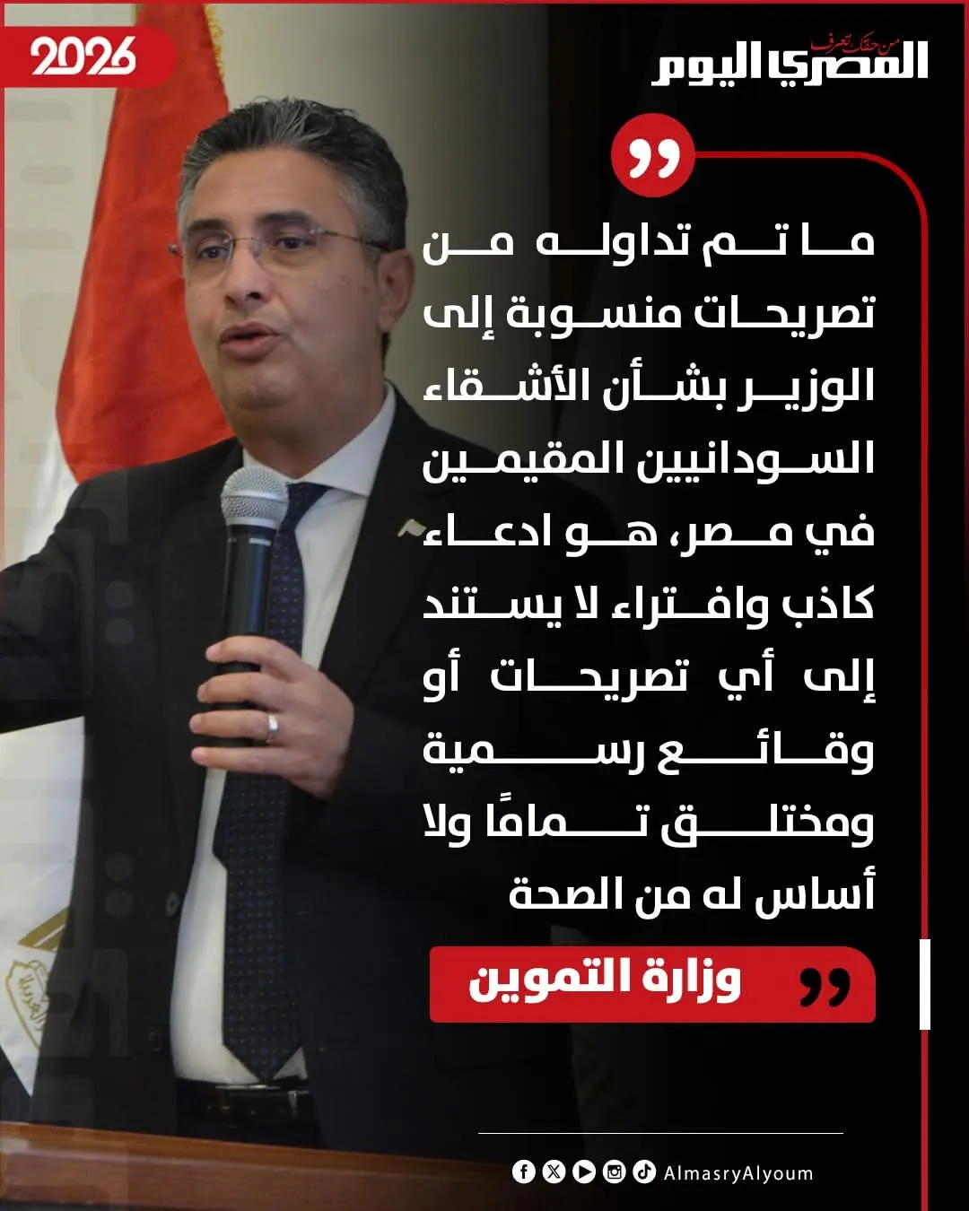 أكدت الوزارة في بيانها أن ما نُسب إلى معالي الدكتور شريف فاروق، وزير التموين والتجارة الداخلية، بشأن السودانيين في مصر، هو محض “ادعاء كاذب وافتراء” لا يستند إلى أي وقائع رسمية. وشدد المركز الإعلامي على أن الوزير لم يفرِد أي تصريحات بهذا الصدد نهائياً، واصفاً ما تم تداوله بأنه “مختلق تماماً“.