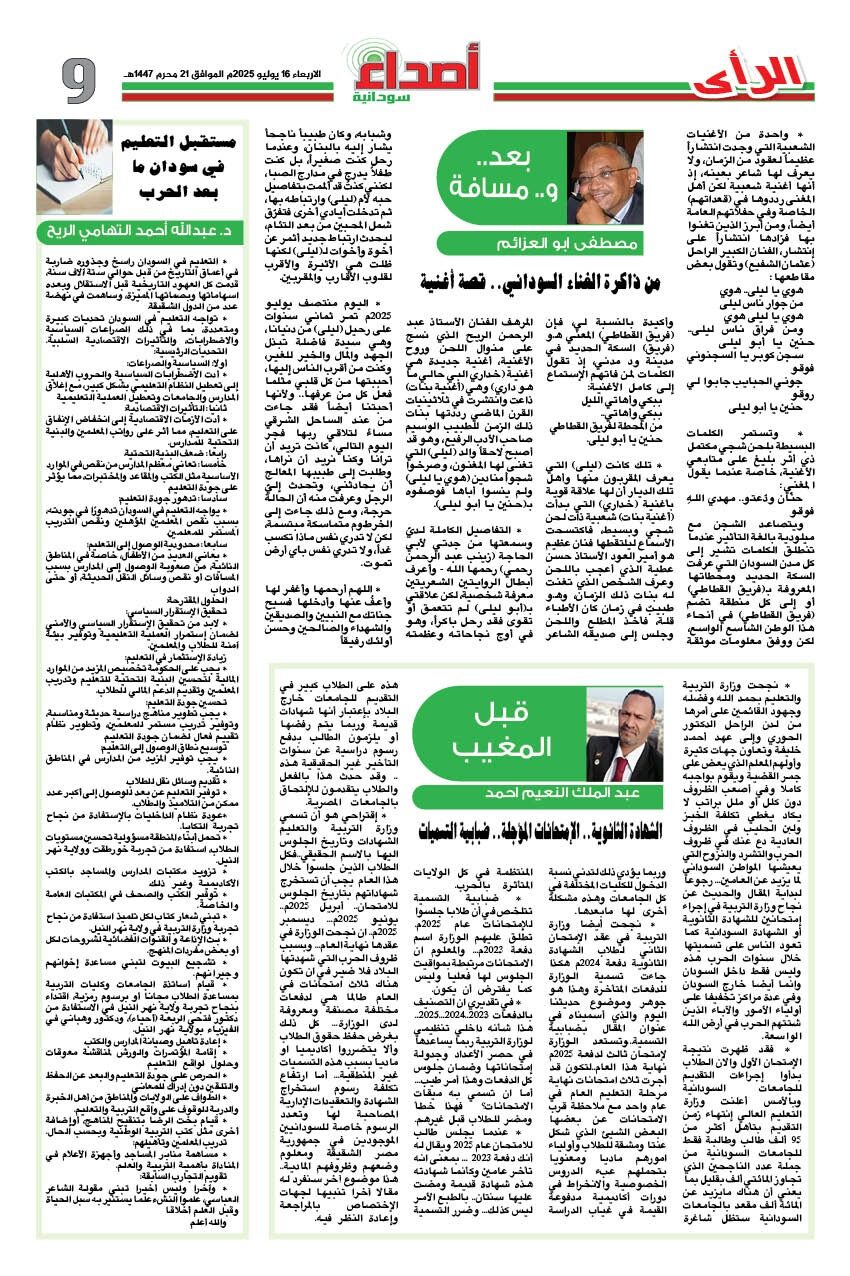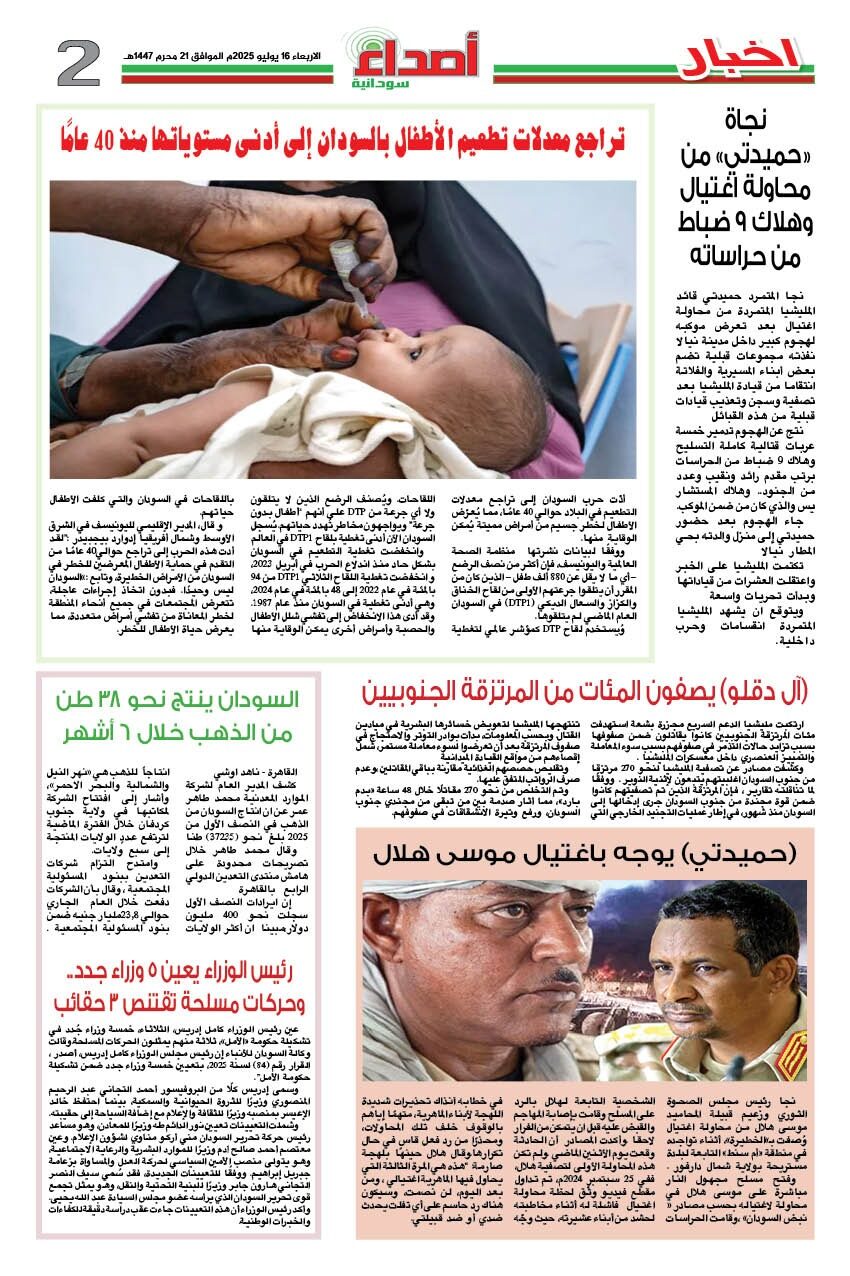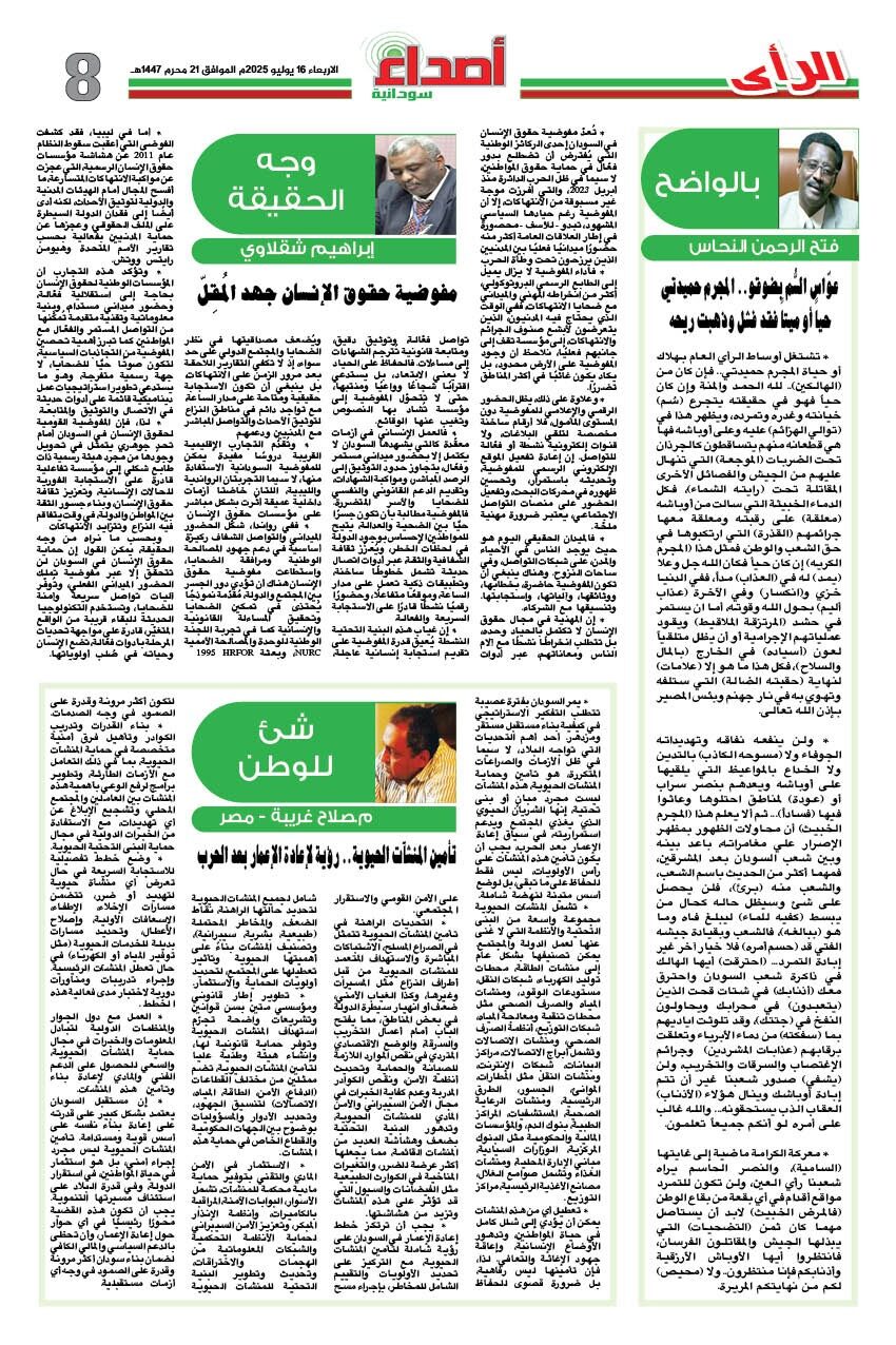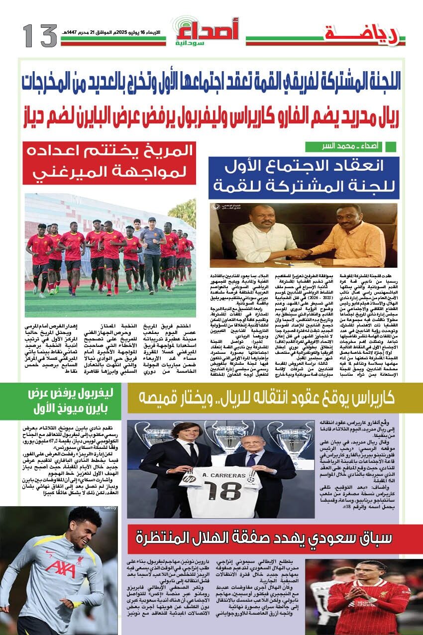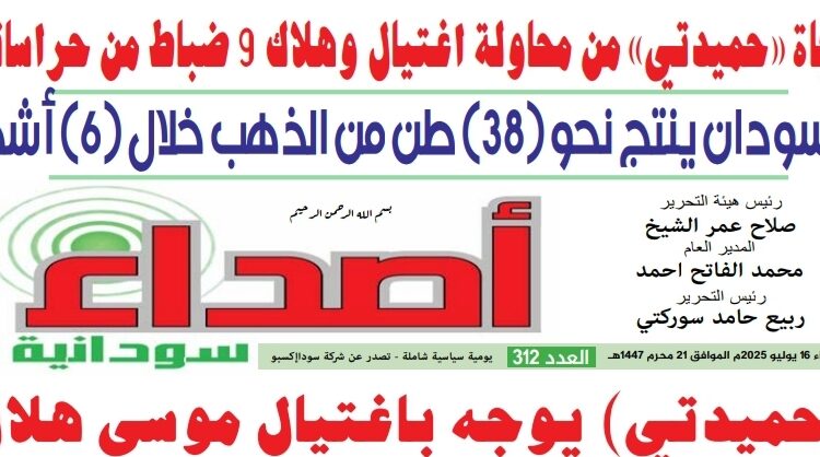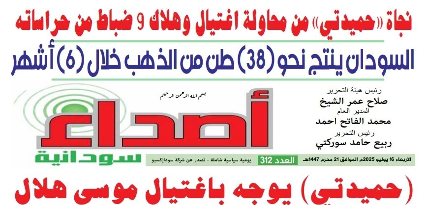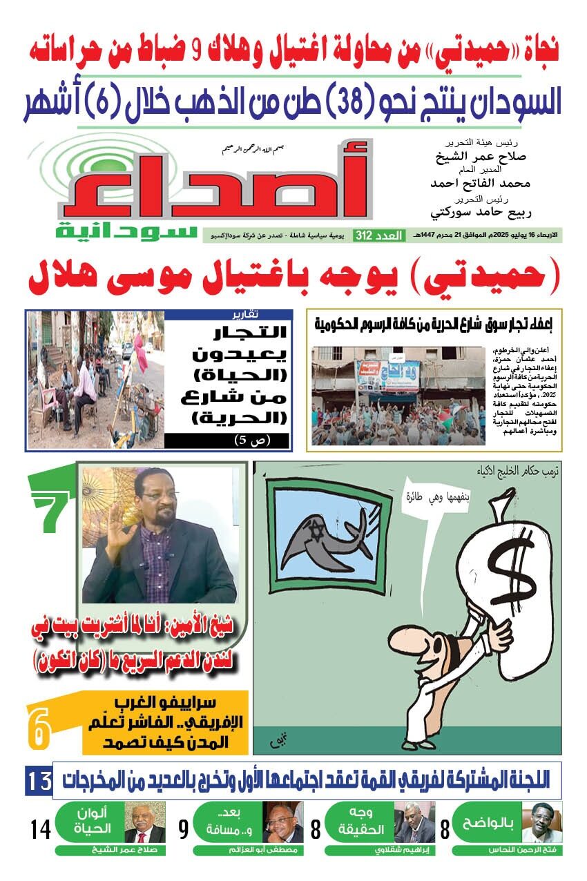 صحيفة اصداء سودانية العدد 312 الصادر يوم الأربعاء 16 يوليو 2025