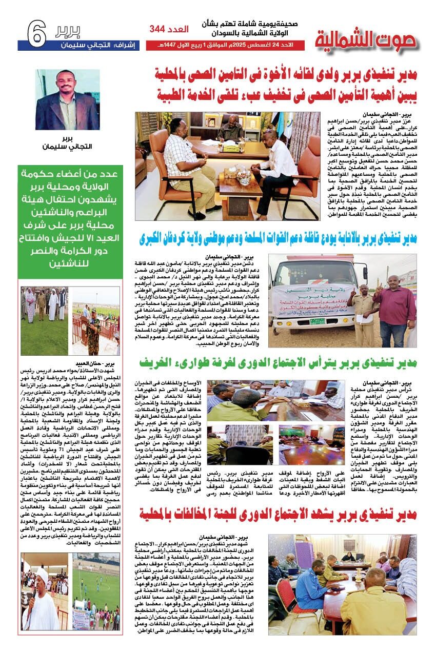 صحيفة صوت الشمالية العدد 344 العدد الصادر يوم الأحد 24 أغسطس 2025