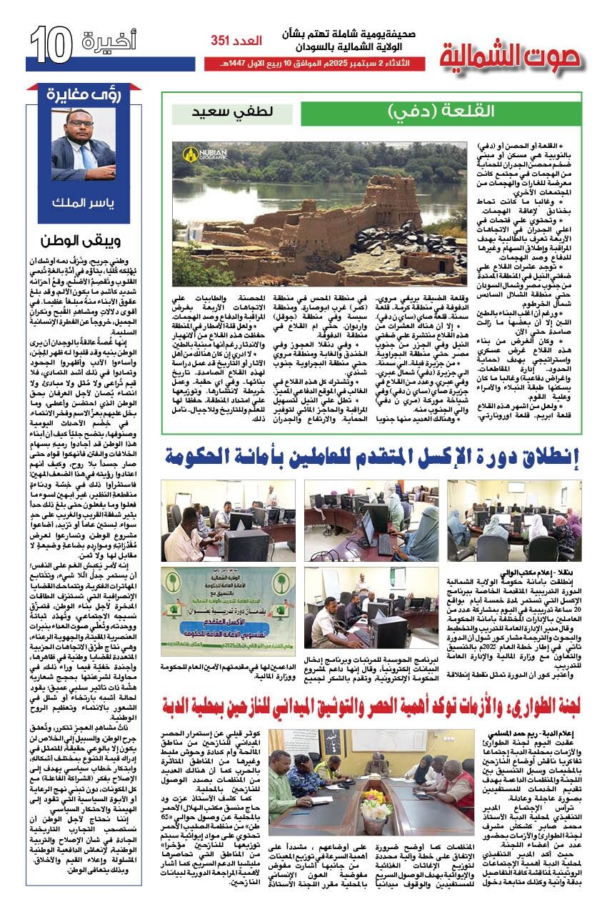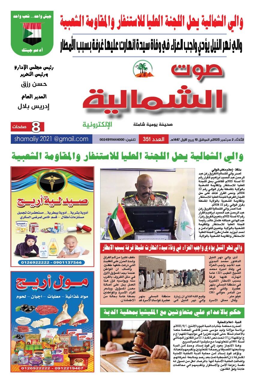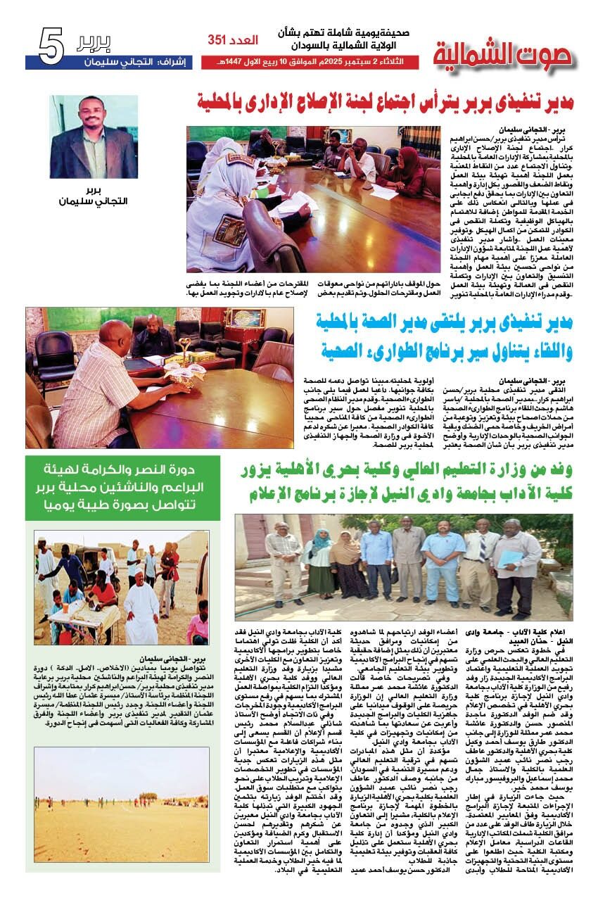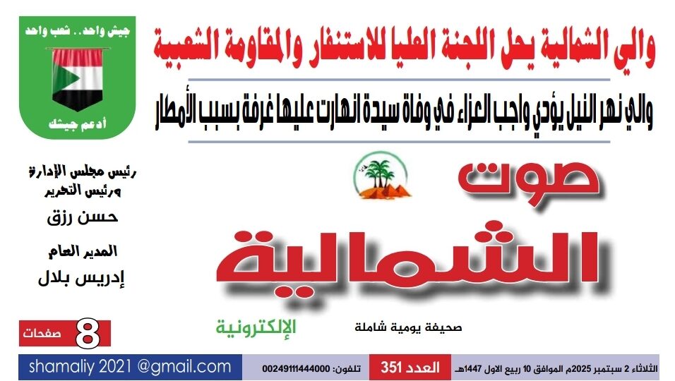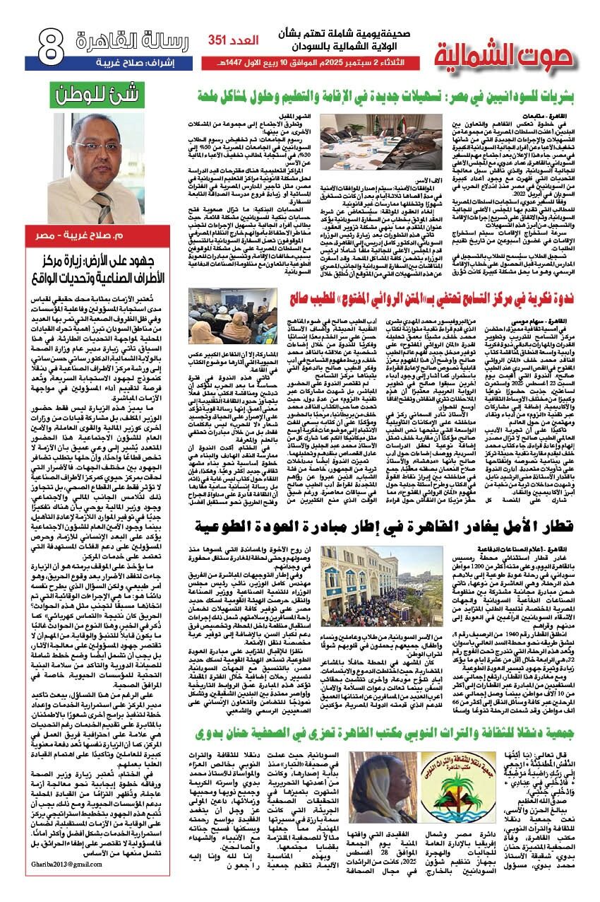 صحيفة صوت الشمالية العدد 351 الصادر يوم الثلاثاء 02 سبتمبر 2025