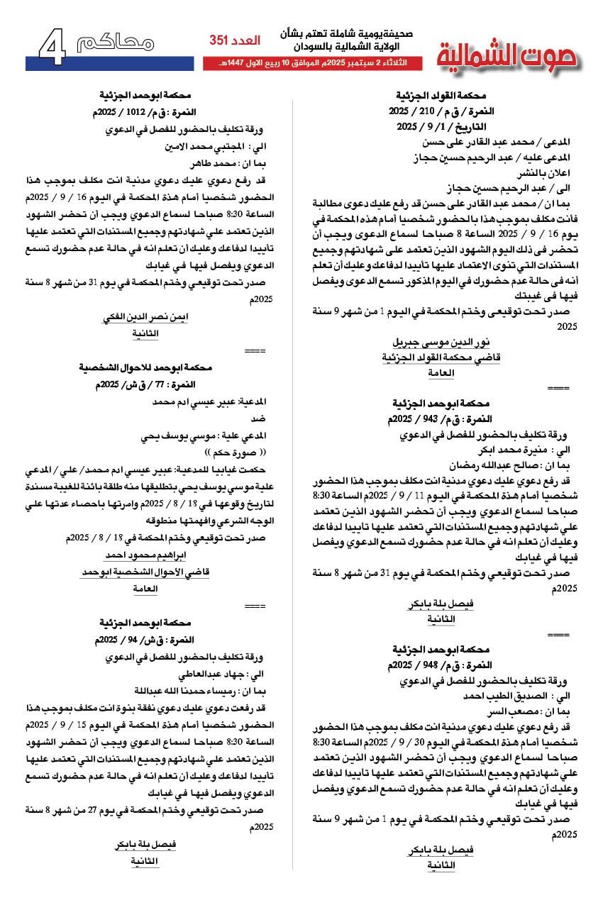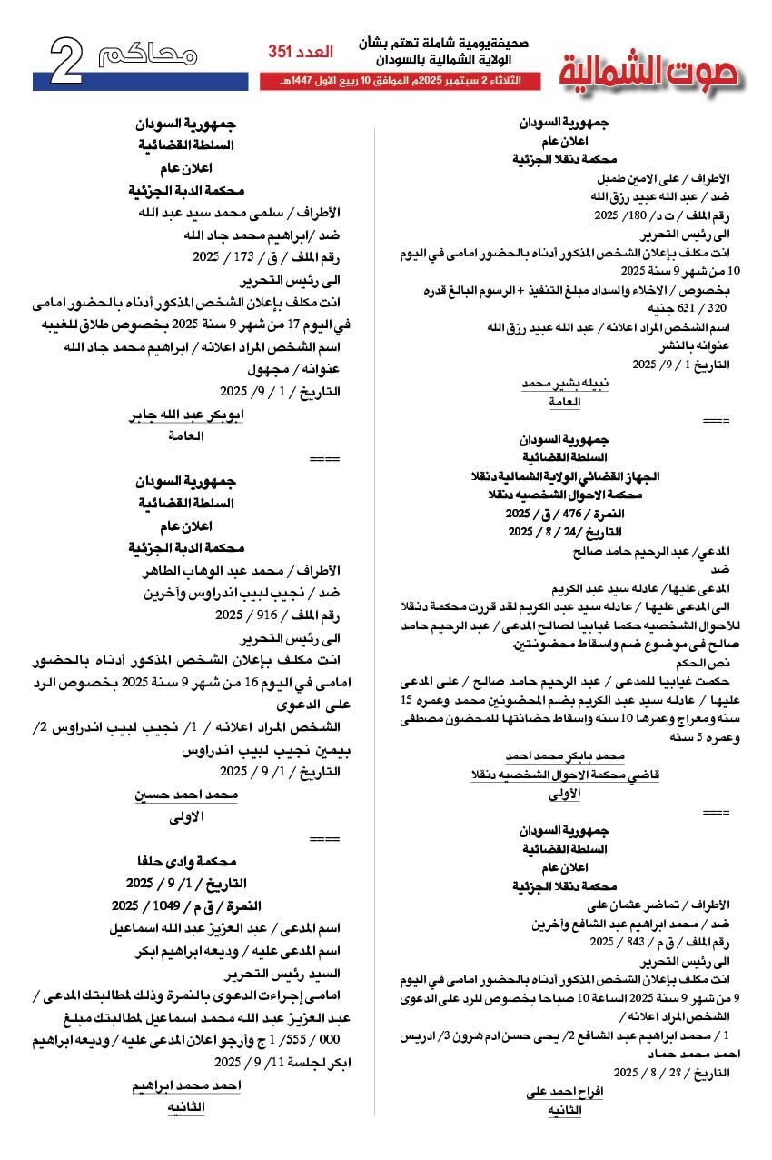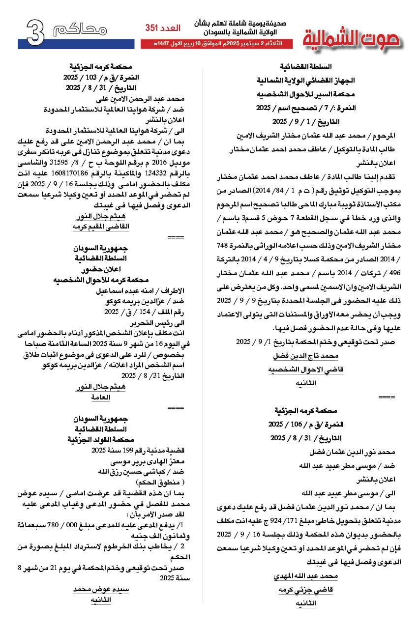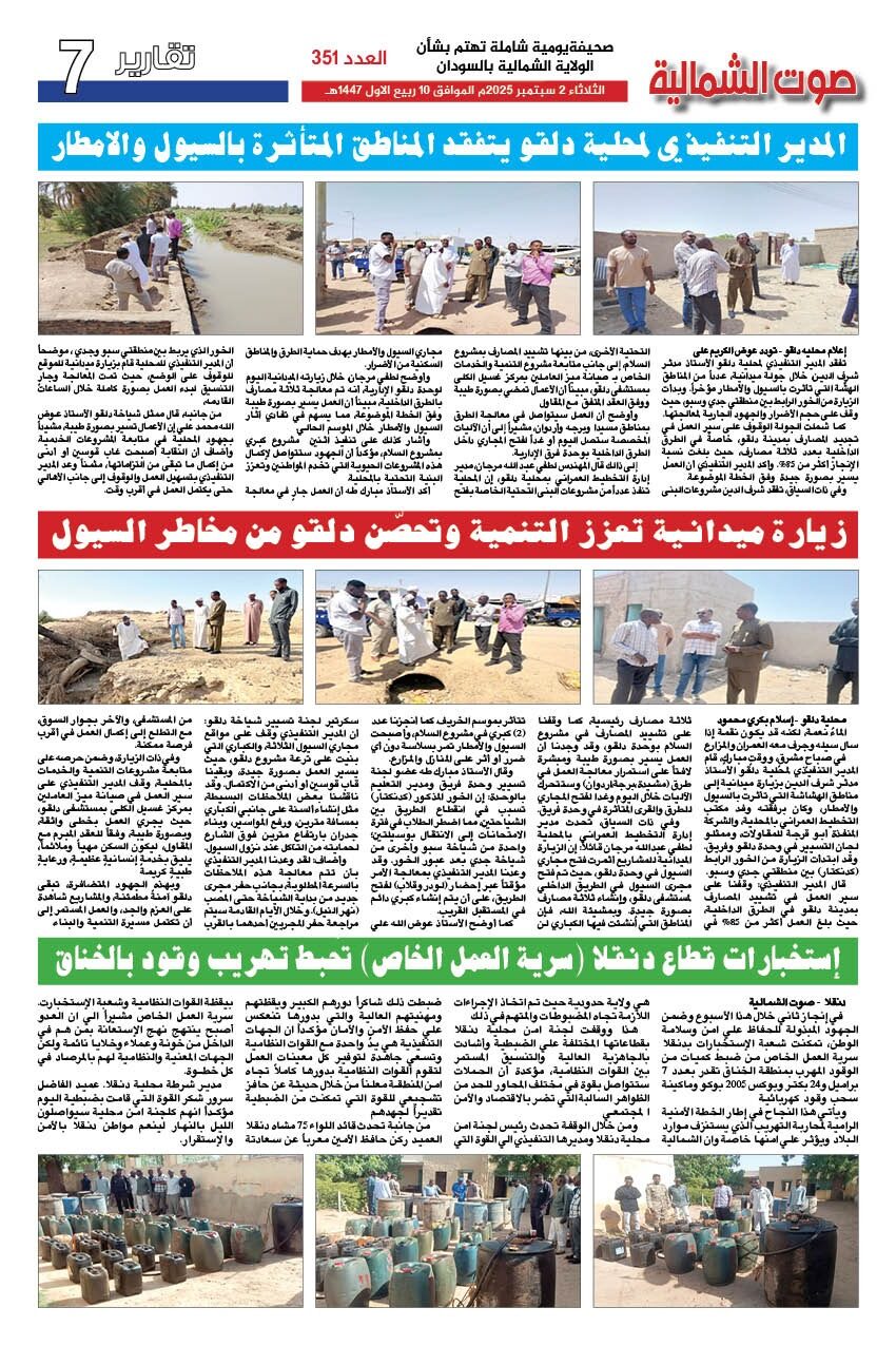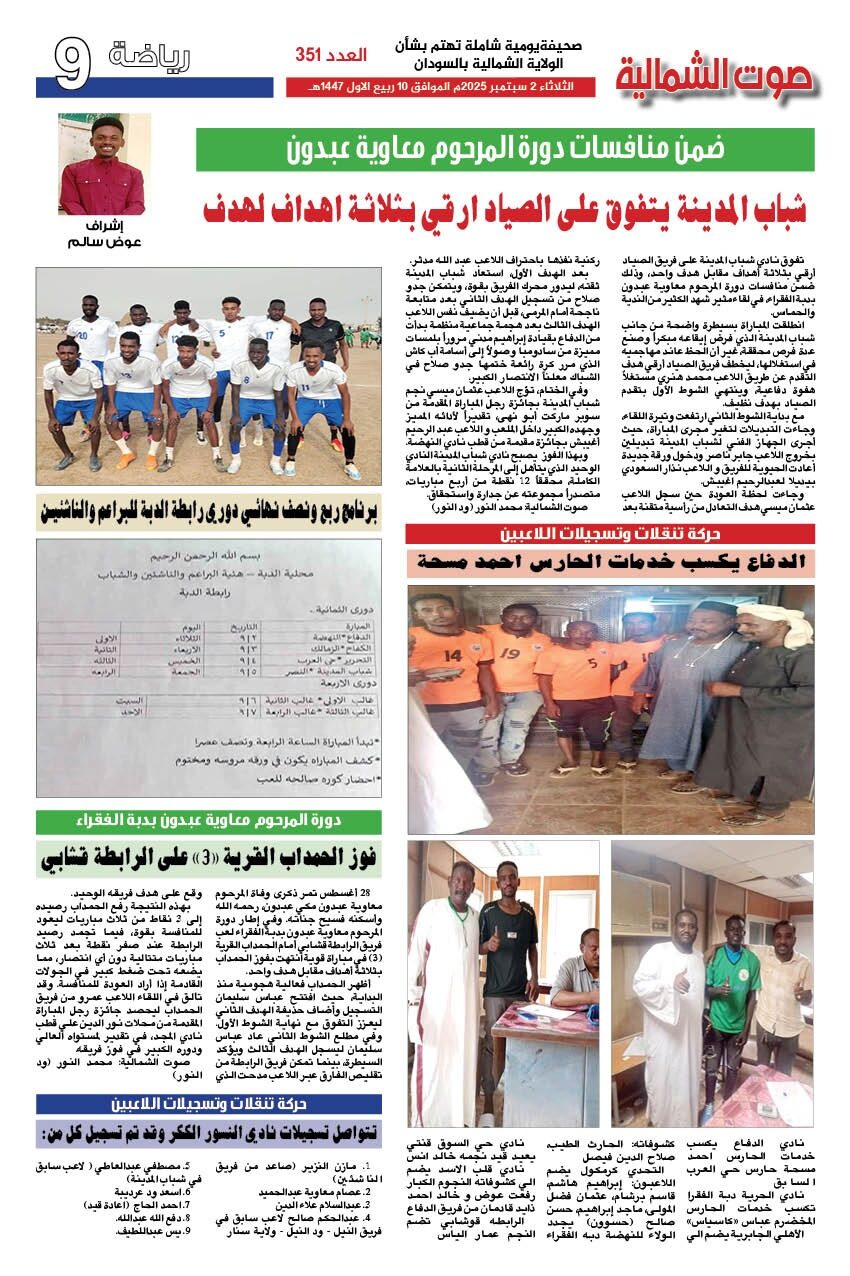 صحيفة صوت الشمالية العدد 351 الصادر يوم الثلاثاء 02 سبتمبر 2025