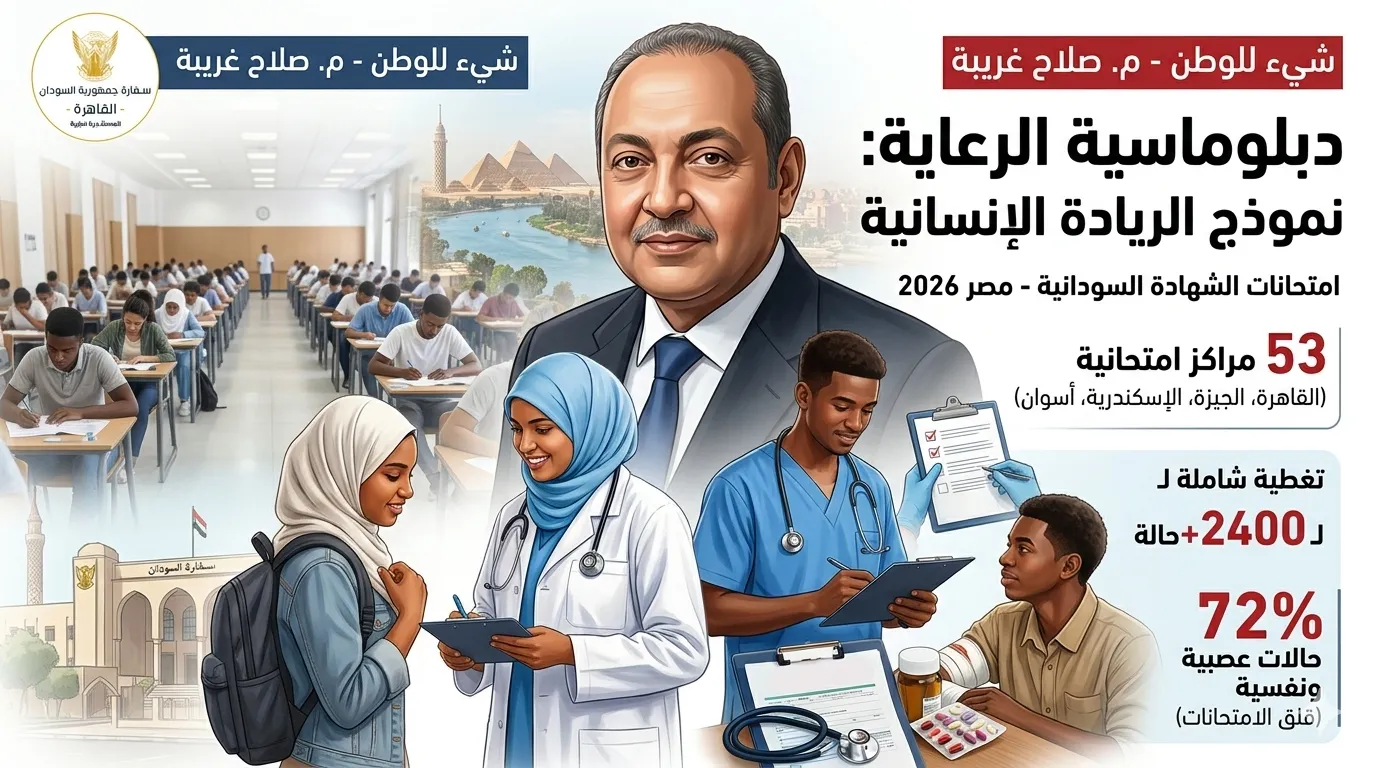 كل التحية لتلك السواعد التي سهرت لتنام أعين الطلاب مطمئنة، ولتلك القيادة التي آمنت بأن خدمة الإنسان هي أسمى مراتب الدبلوماسية. إن تجربة امتحانات الشهادة السودانية بمصر لعام 2026 ستظل علامة فارقة في سجل الإنجازات الإنسانية للمستشارية الطبية.