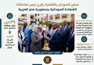 في أجواء سادتها روح التعاون والإخاء، قرع الفريق أول ركن مهندس عماد الدين عدوي، سفير جمهورية السودان لدى مصر، جرس انطلاق امتحانات الشهادة الثانوية السودانية لعام 2026، وذلك من مدرسة “النقراشي” بحدائق القبة بالقاهرة.