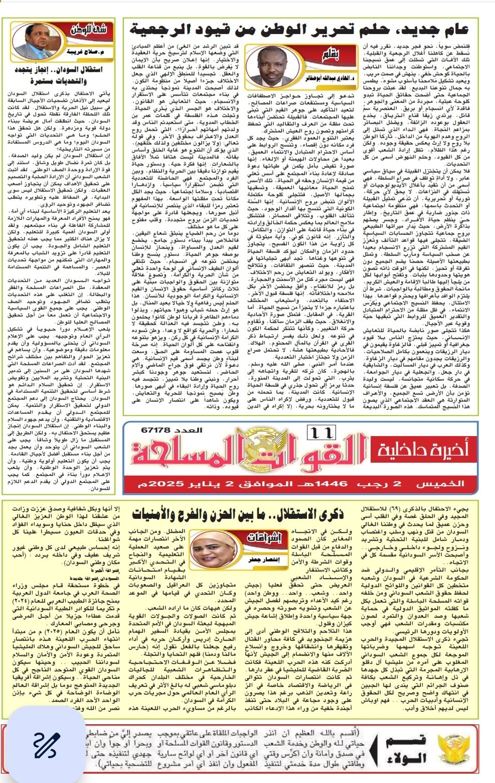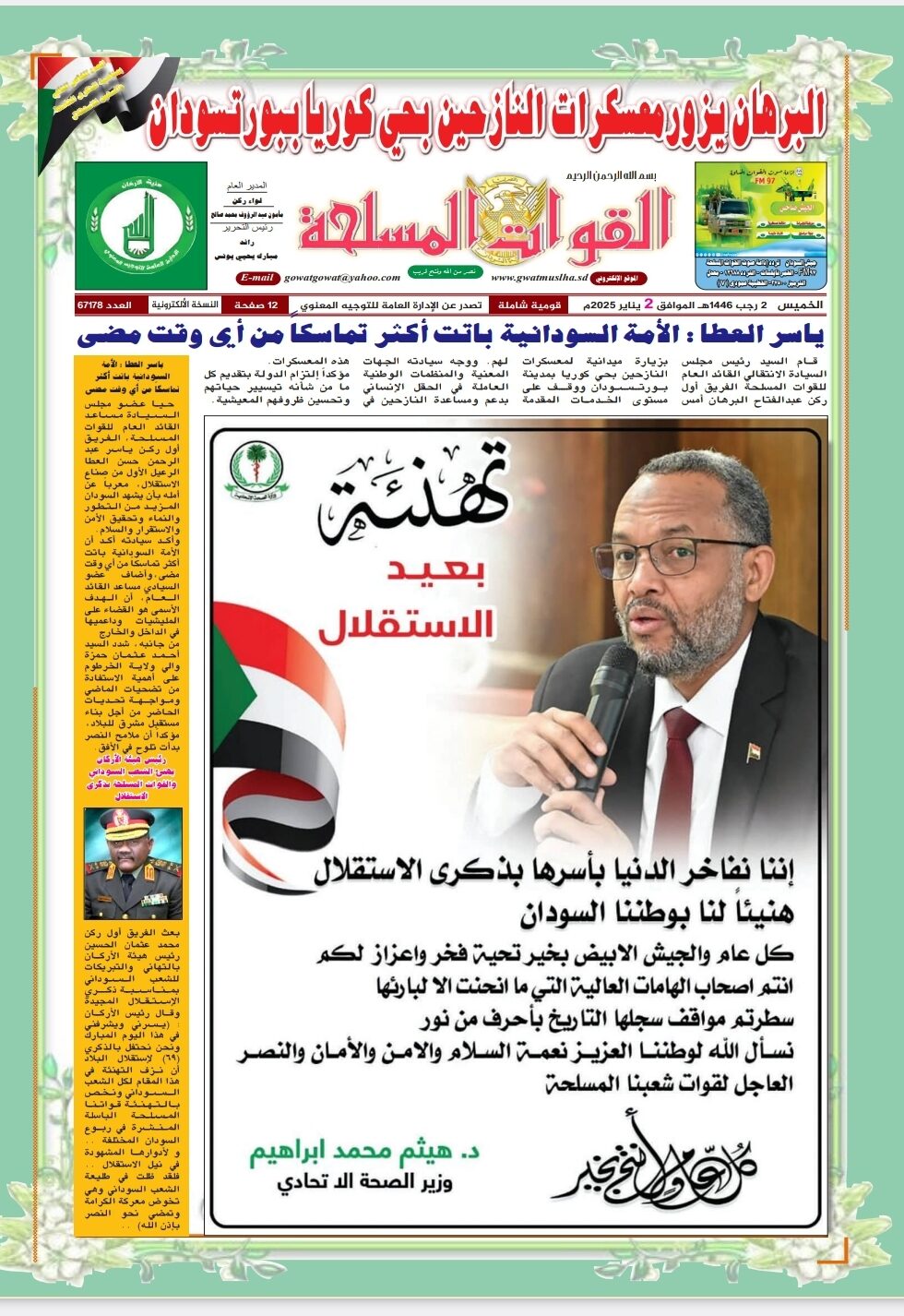 العدد الثاني الخاص بالذكرى 69 لاستقلال السودان من صحيفة (القوات المسلحة) الصادر يوم الخميس الثاني من يناير 2025