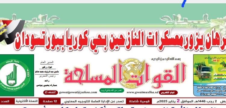 لتصفح العدد الثاني الخاص بالذكرى 69 لاستقلال السودان من صحيفة (القوات المسلحة) الصادر يوم الخميس الثاني من يناير 2025، مستخدما تطبيق Google drive، اضغط هنا …..!!