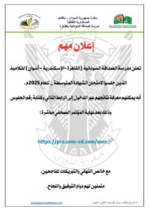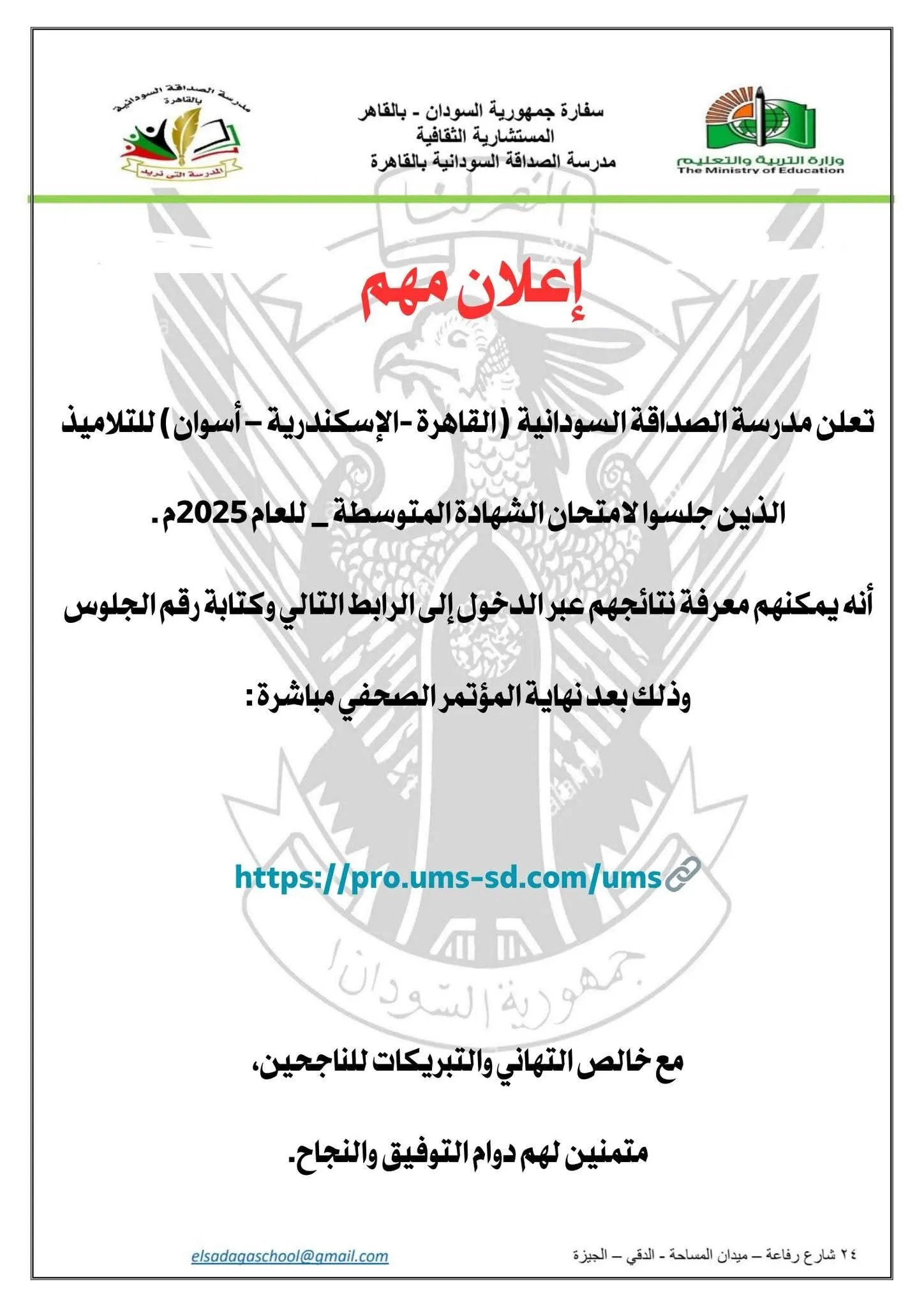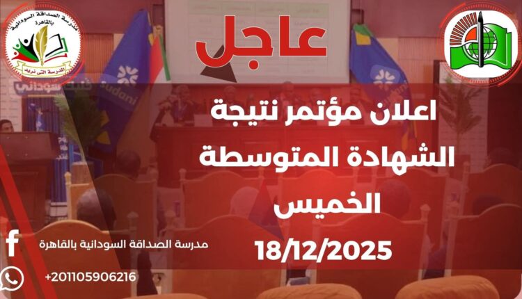 اليوم …….. إعلان نتائج الشهادة المتوسطة بمدارس الصداقة السودانية بمصر لعام 2025
