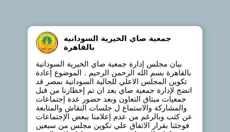 جمعية صاي الخيرية تجمد عضويتها في المجلس الأعلى للجالية السودانية بمصر: ضبابية الرؤية وغياب خارطة الطريق وراء القرار