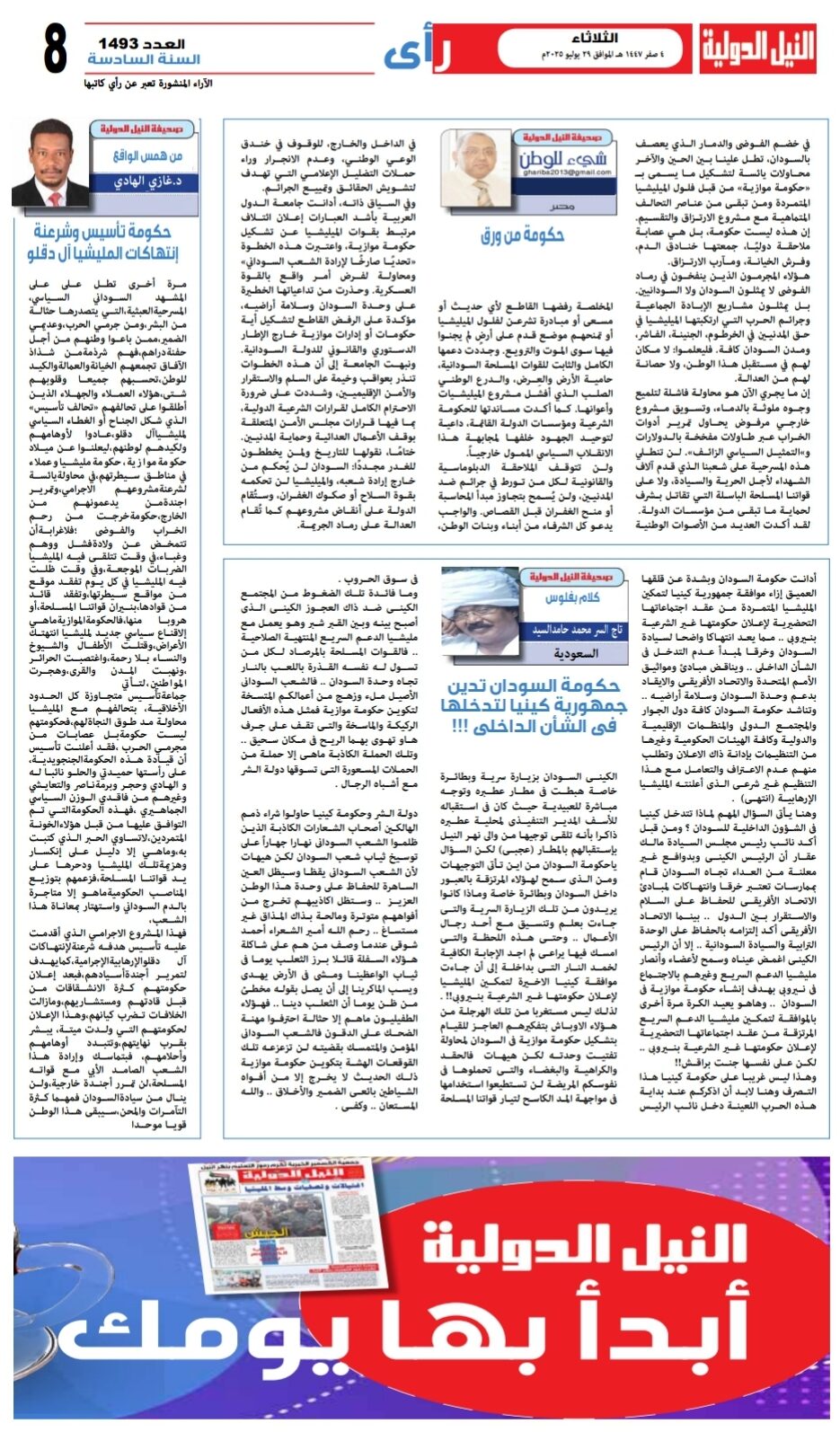 ختامًا، نقولها للتاريخ ولمن يخططون للغدر مجددًا: السودان لن يُحكم من خارج إرادة شعبه، والميليشيا لن تحكمه بقوة السلاح أو صكوك الغفران، وستُقام الدولة على أنقاض مشروعهم كما تُقام العدالة على رماد الجريمة.