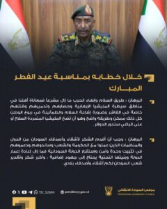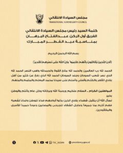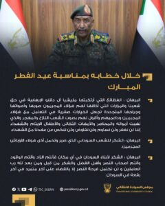 رئيس مجلس السيادة يوجه كلمة للشعب السوداني بمناسبة عيد الفطر المبارك