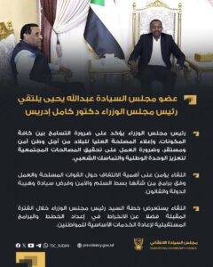 عضو مجلس السيادة عبدالله يحيى يلتقي رئيس مجلس الوزراء دكتور كامل إدريس
