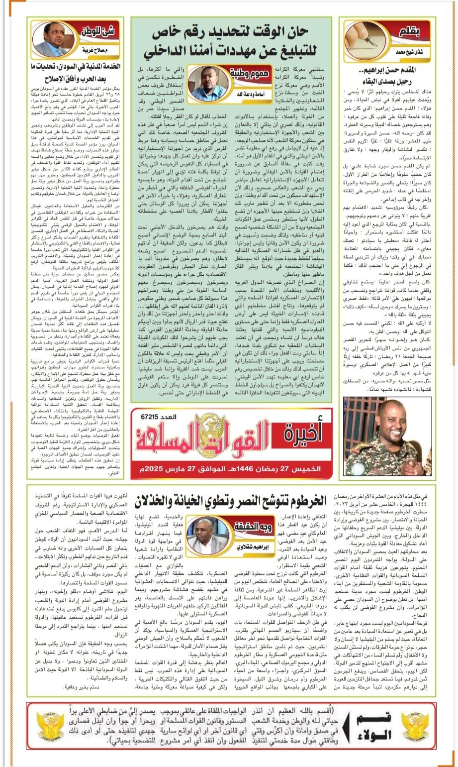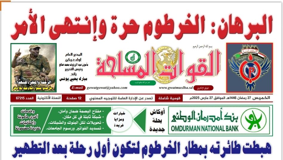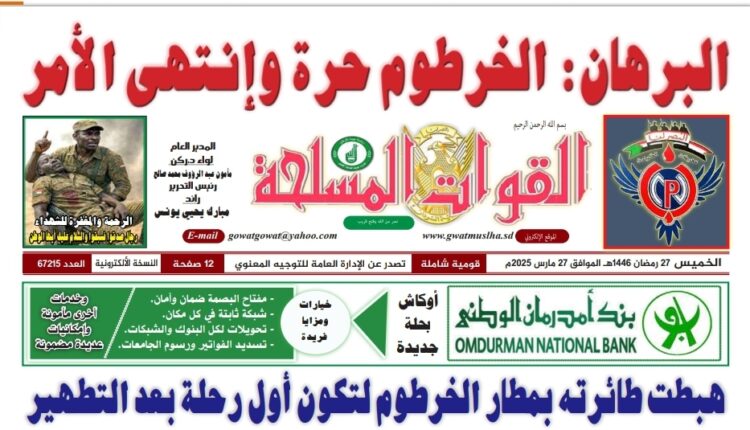 صحيفة القوات المسلحة العدد الصادر يوم الخميس 27 مارس 2025