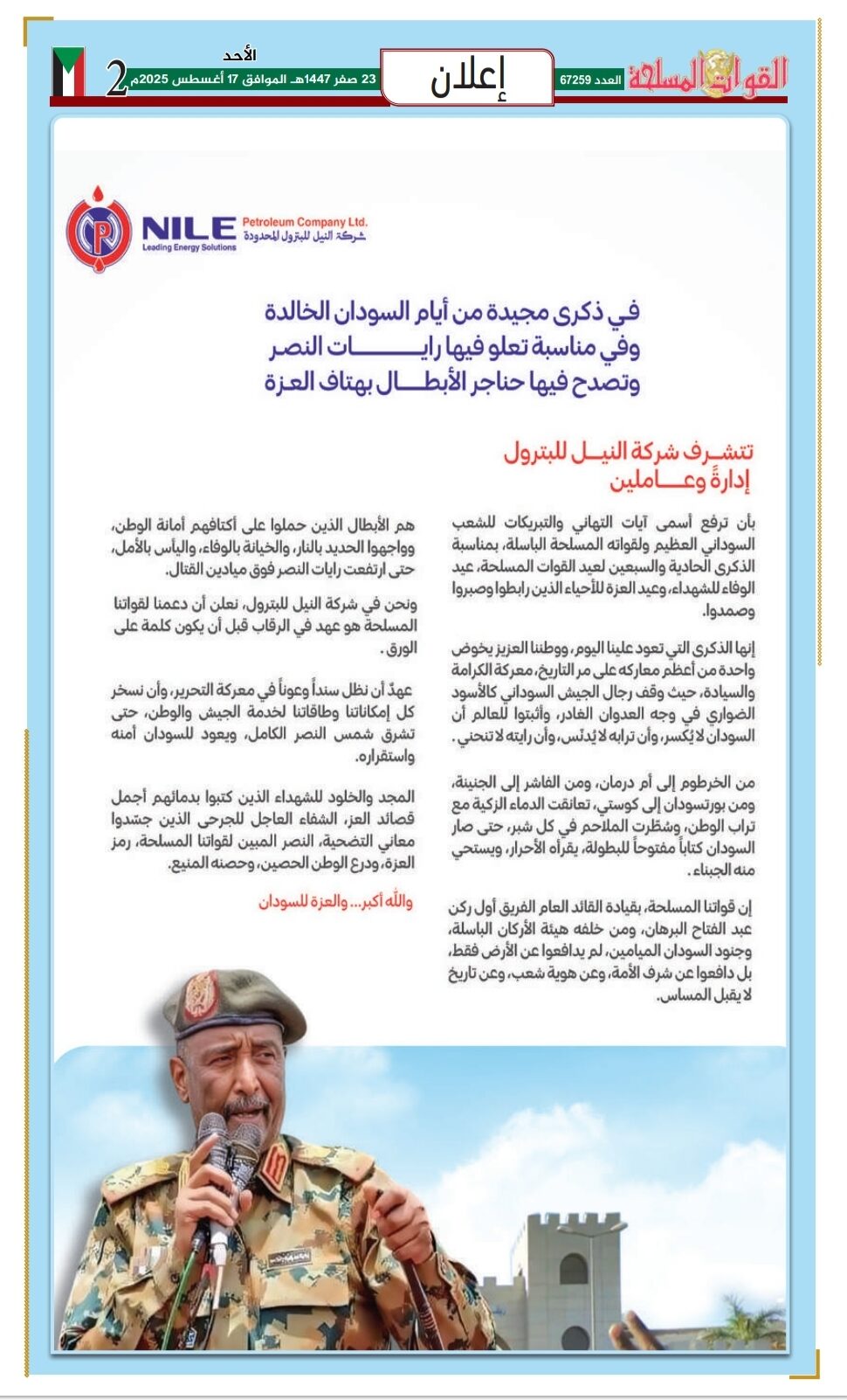 لتصفح صحيفة القوات المسلحة العدد الصادر يوم الأحد 17 أغسطس 2025، مستخدما تطبيق Google drive، أضغط هنا .. …….!!