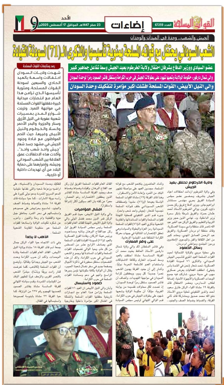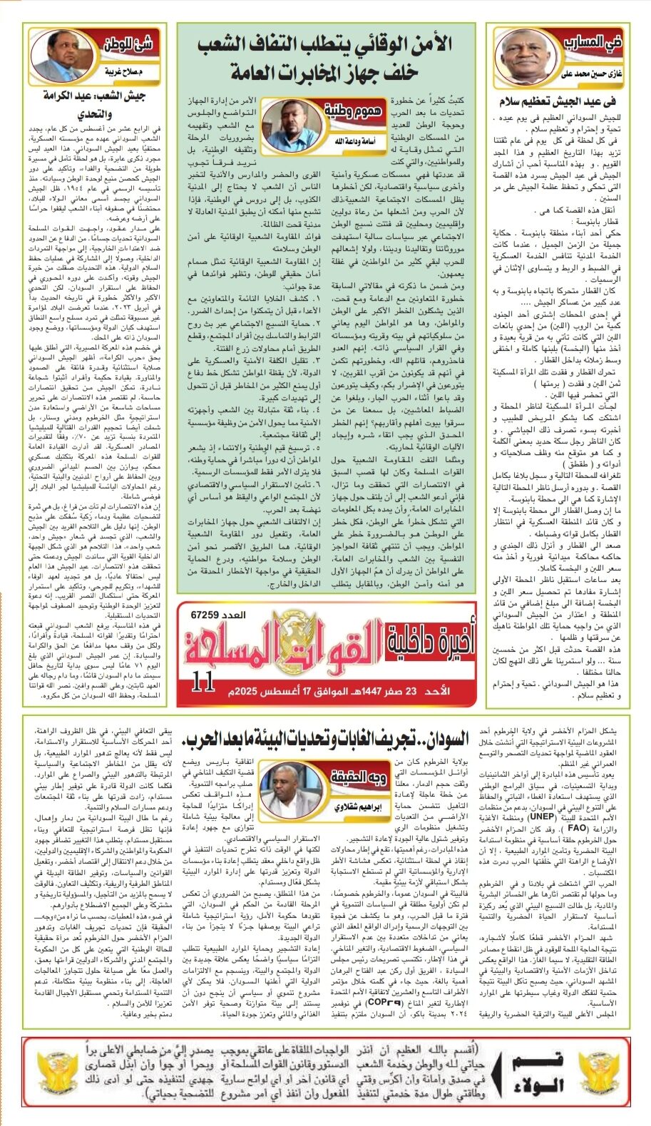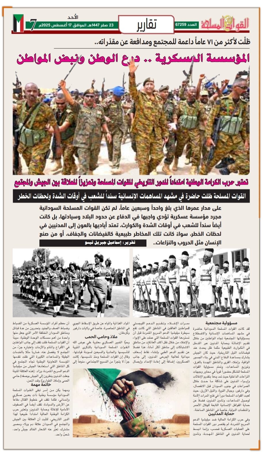 صحيفة القوات المسلحة العدد الصادر يوم الأحد 17 أغسطس 2025