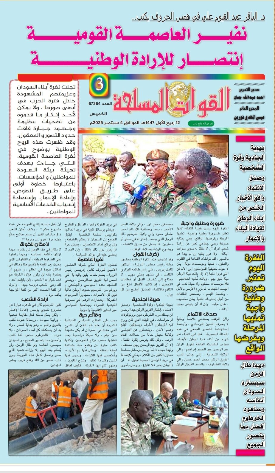 صحيفة القوات المسلحة العدد الصادر يوم الخميس 04 سبتمبر 2025