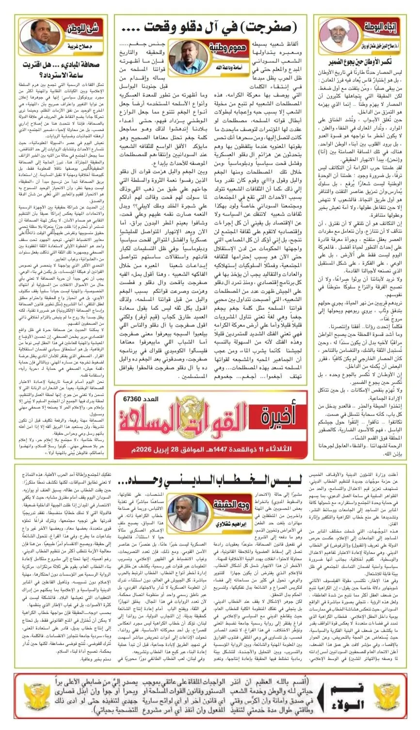 القوات المسلحة – الثلاثاء ٢٨-٤- ٢٠٢٦م