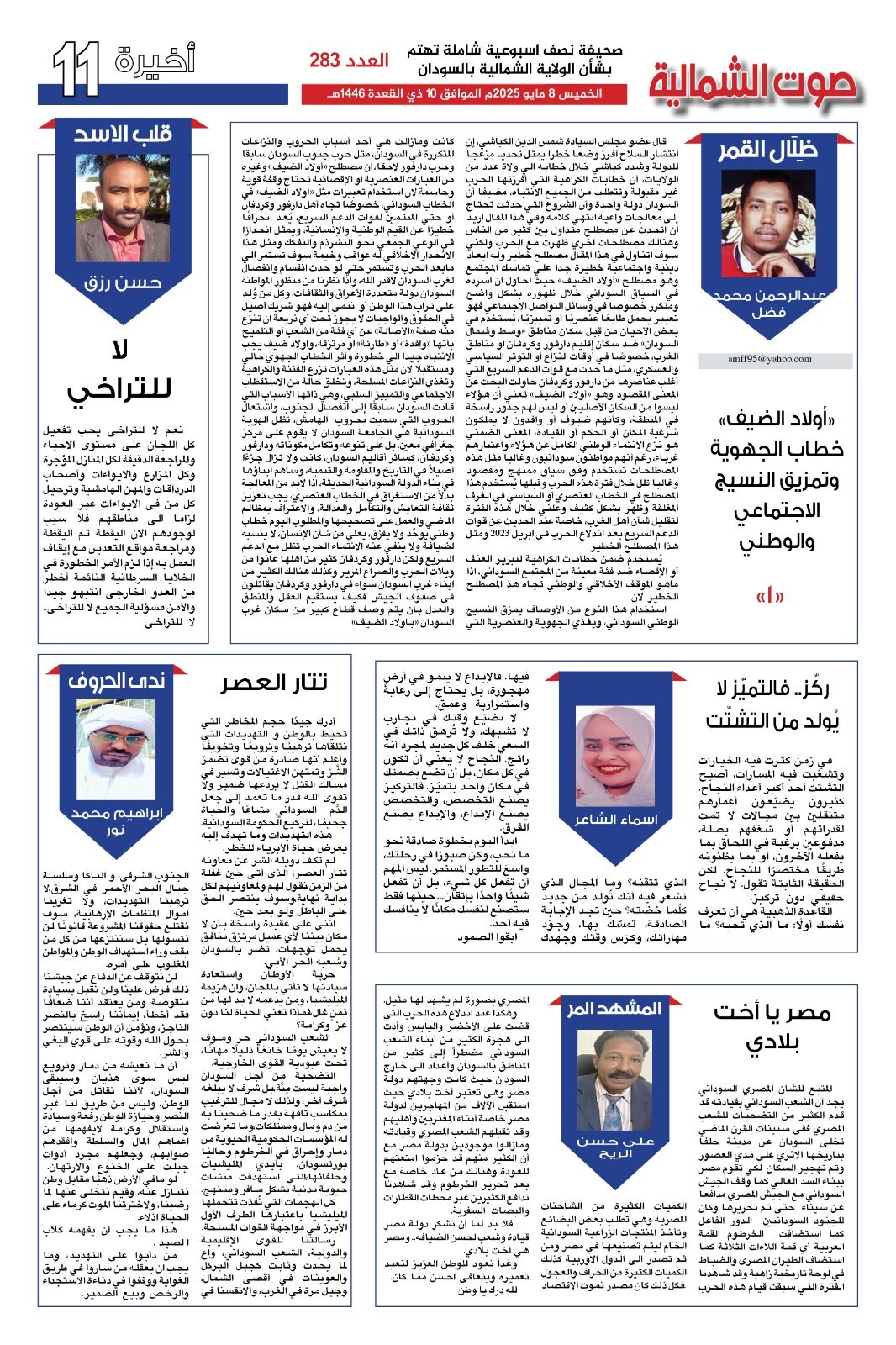 صحيفة صوت الشمالية العدد 283 العدد الصادر يوم الخميس 08 مايو 2025