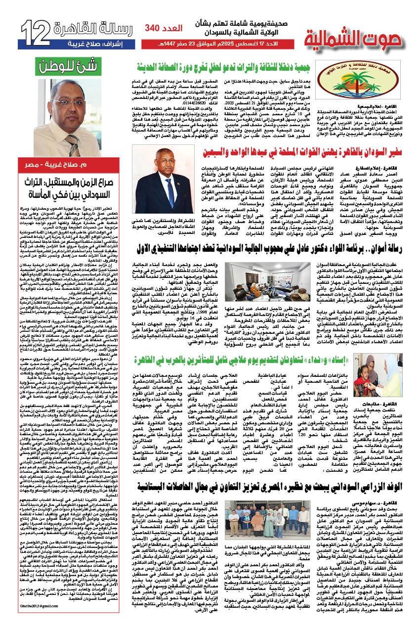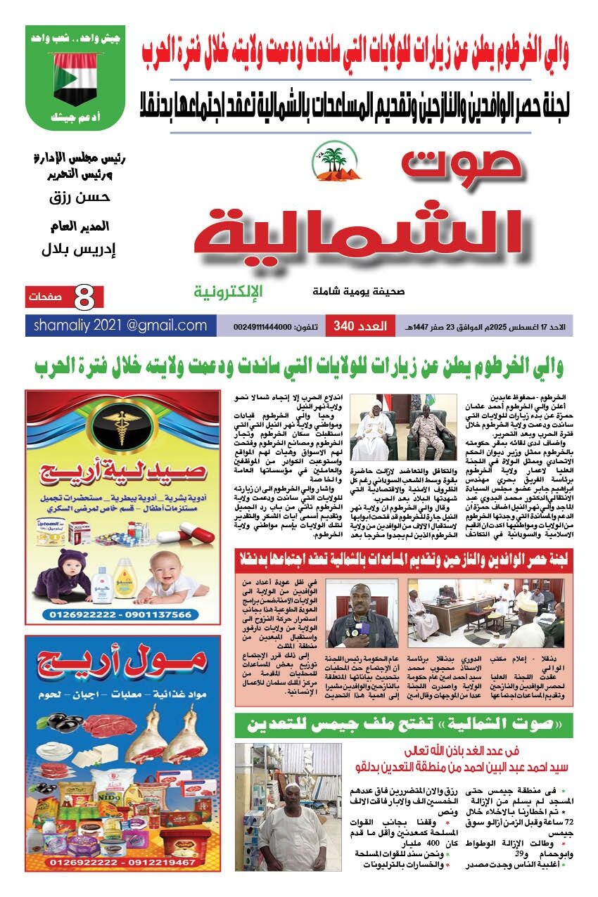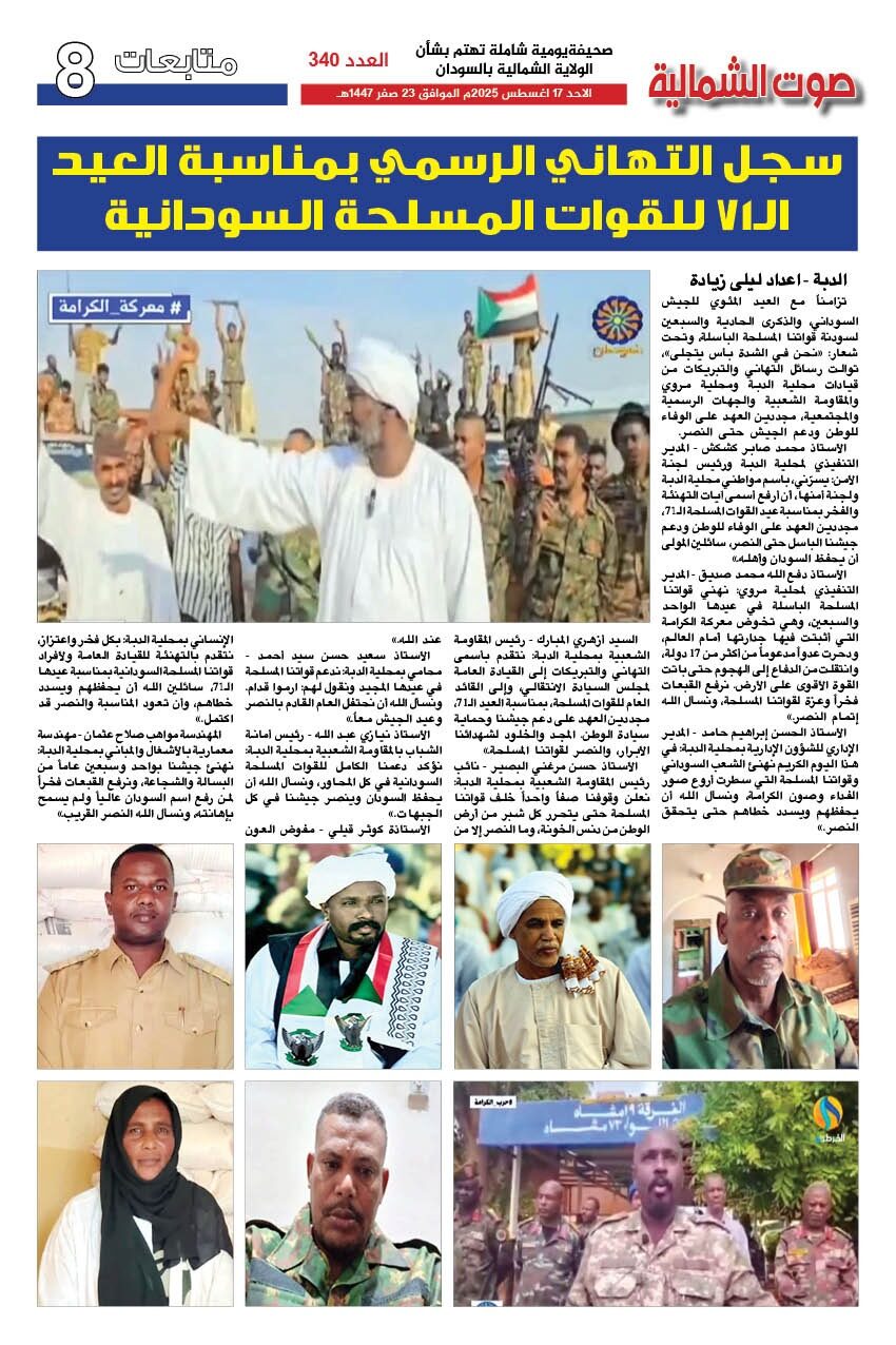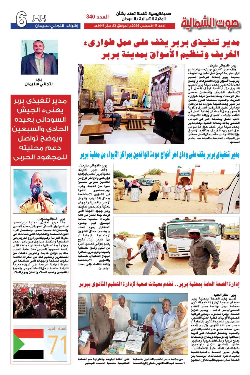 صحيفة صوت الشمالية العدد 340 العدد الصادر يوم الأحد 17 أغسطس 2025