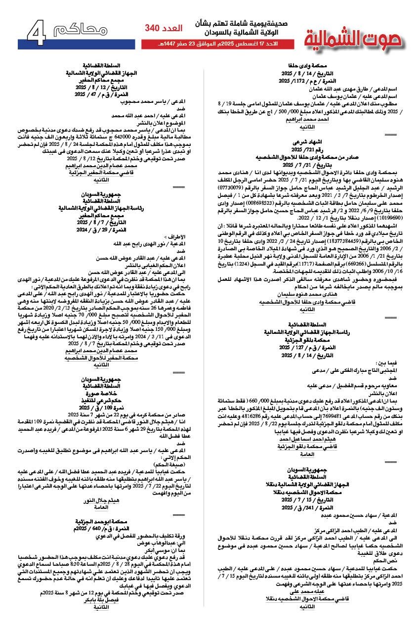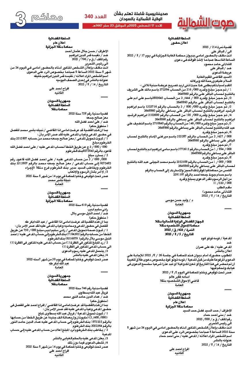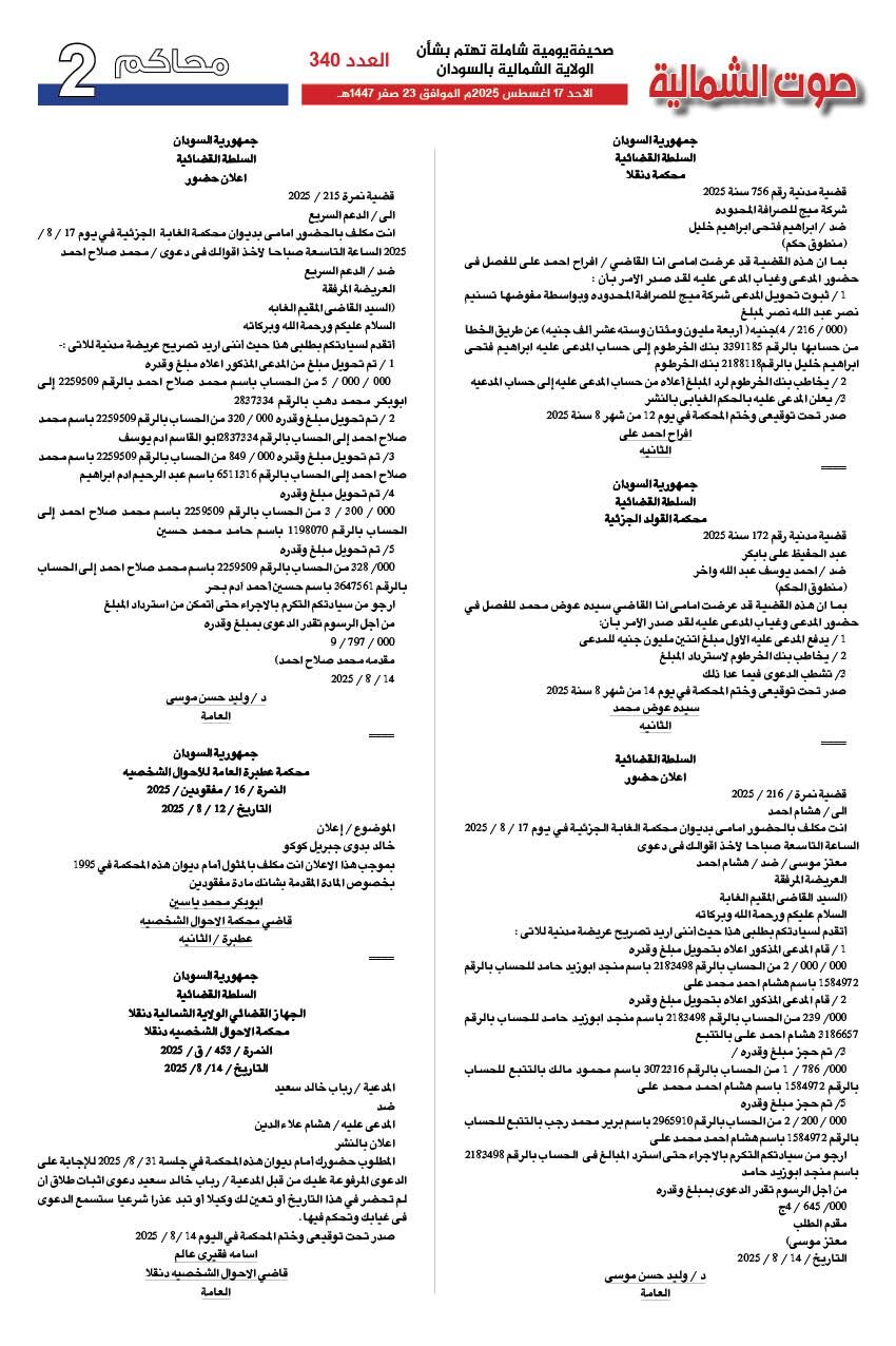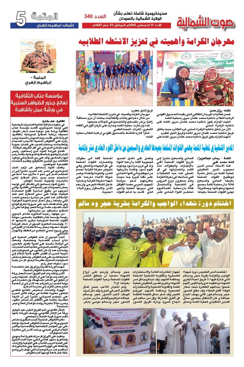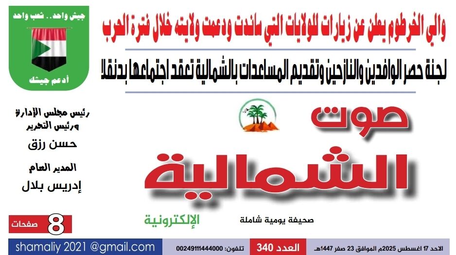 صحيفة صوت الشمالية العدد 340 العدد الصادر يوم الأحد 17 أغسطس 2025