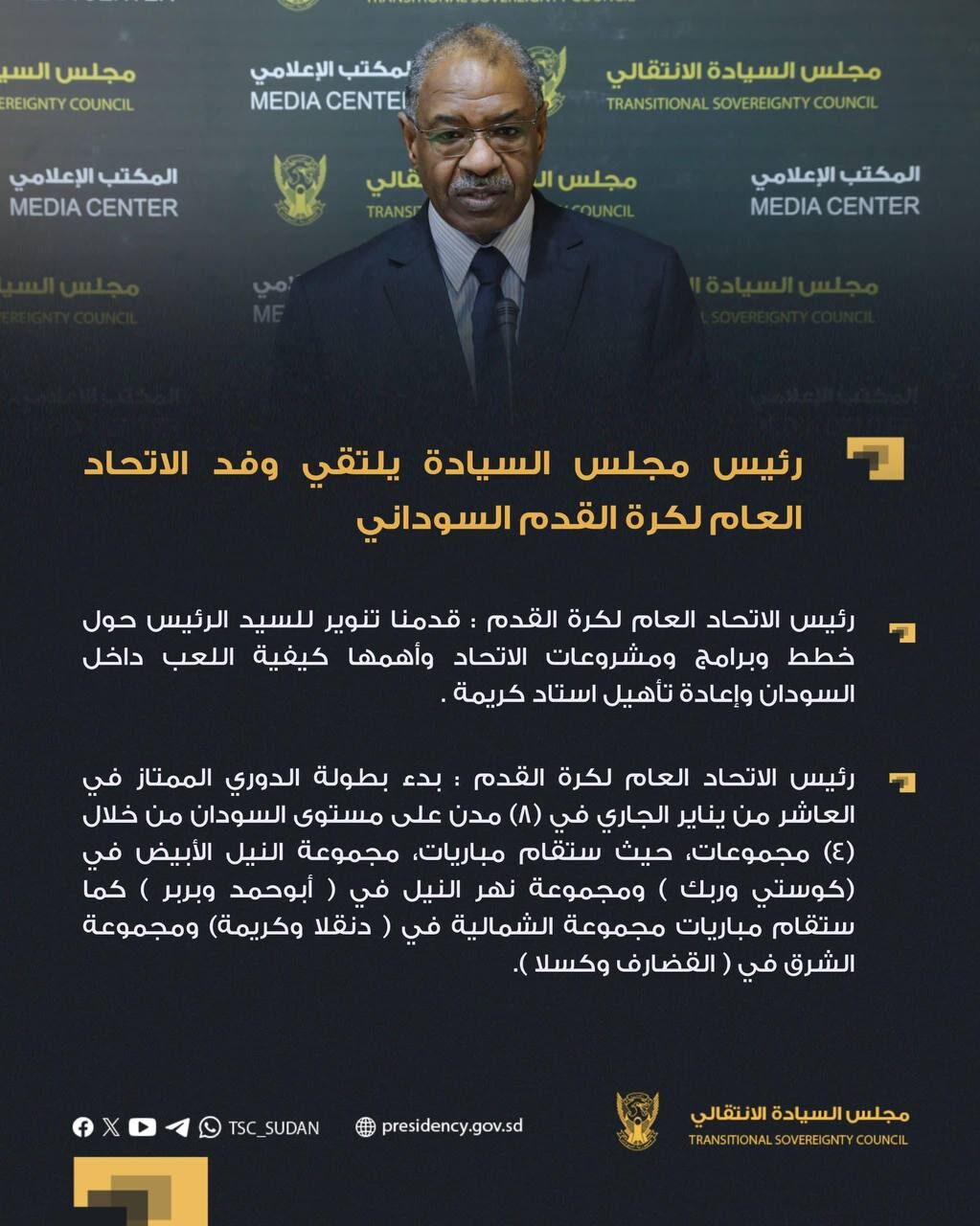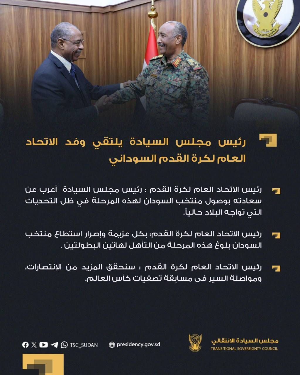 رئيس مجلس السيادة يلتقي وفد الاتحاد العام لكرة القدم السوداني