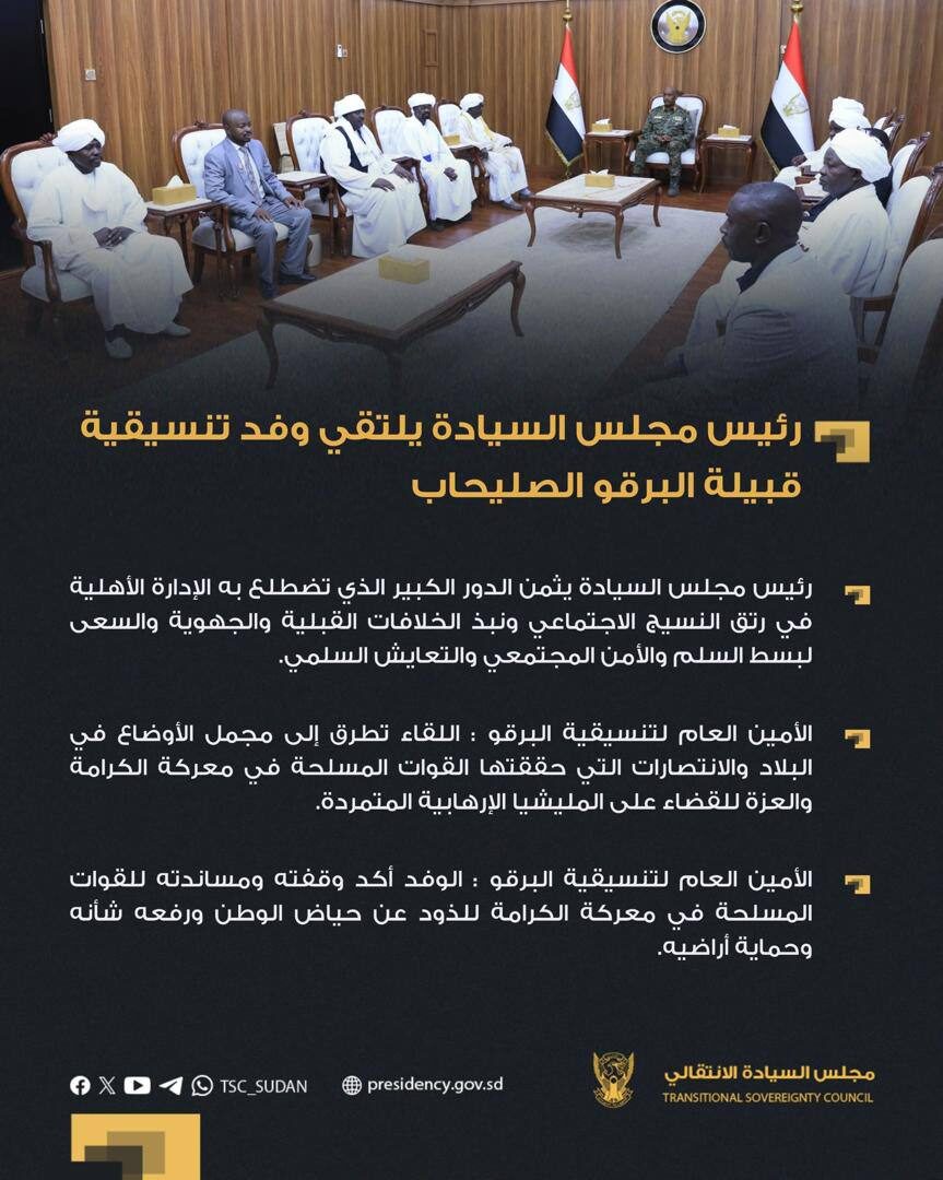 رئيس مجلس السيادة يلتقي وفد تنسيقية قبيلة البرقو الصليحاب