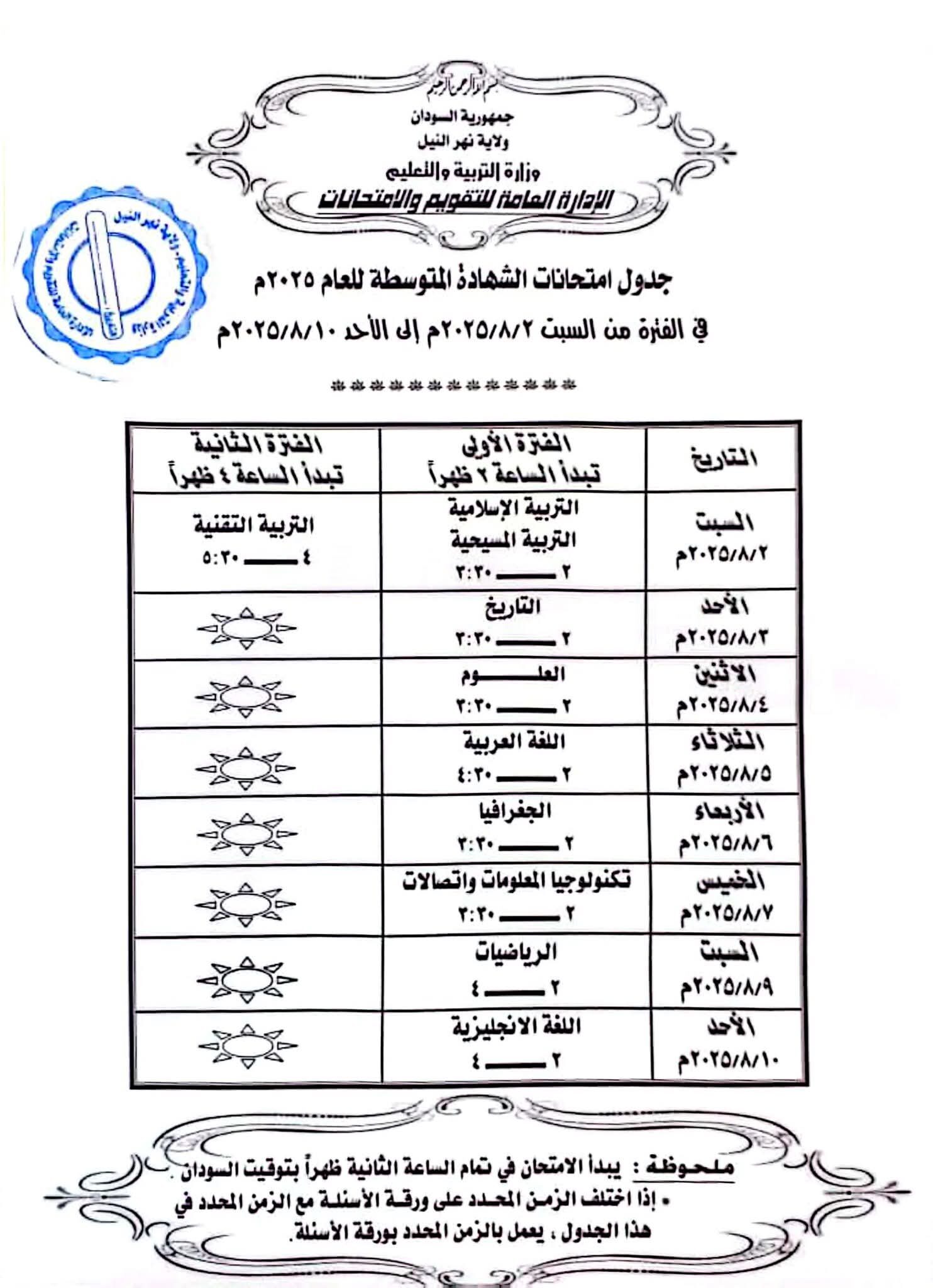 على جميع أولياء أمور طلاب وطالبات الشهادة المتوسطة 2025أنه يمكنهم الدخول على الرابط أدناه لمعرفة مراكز جلوس الامتحان :