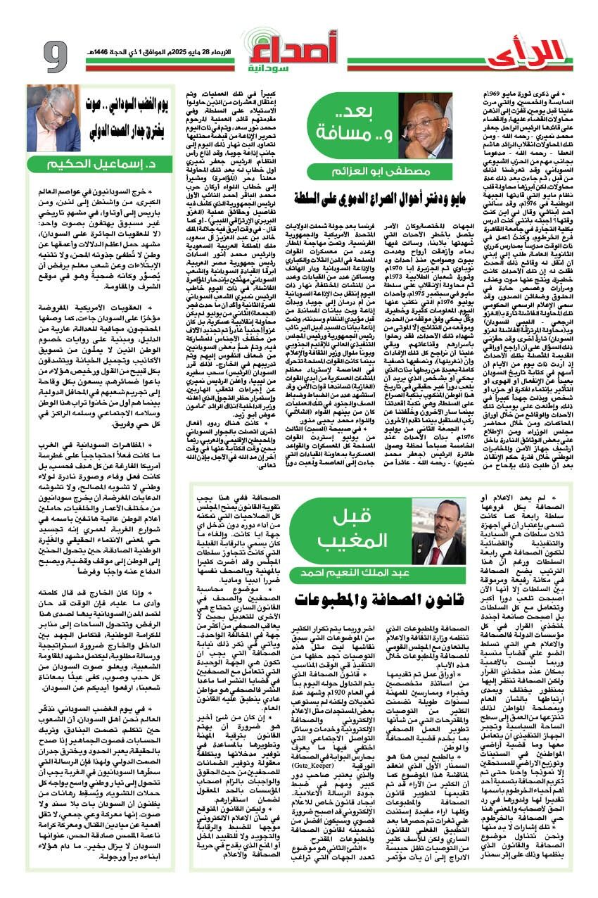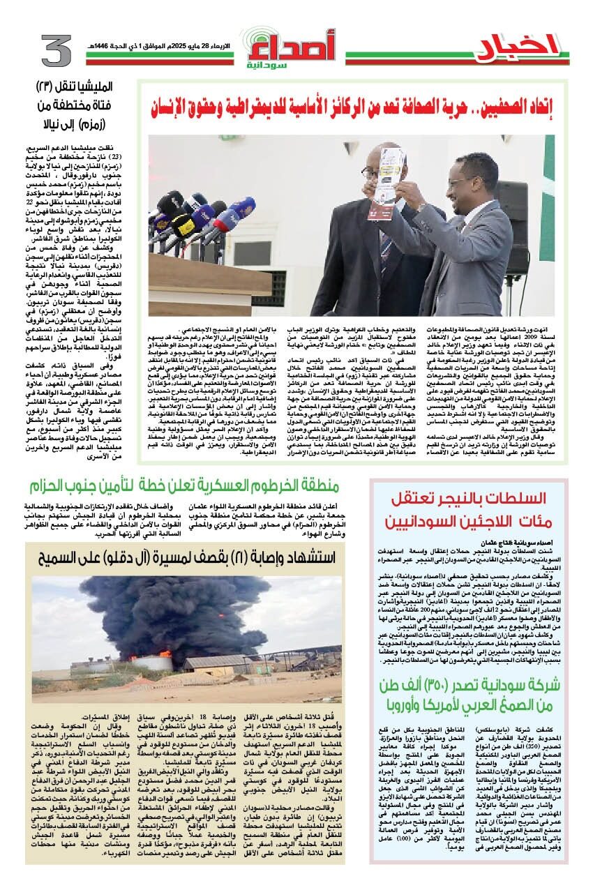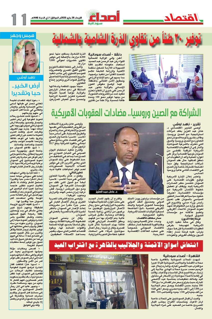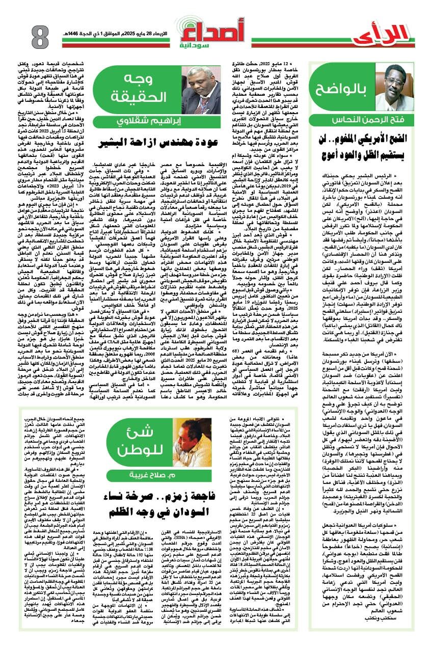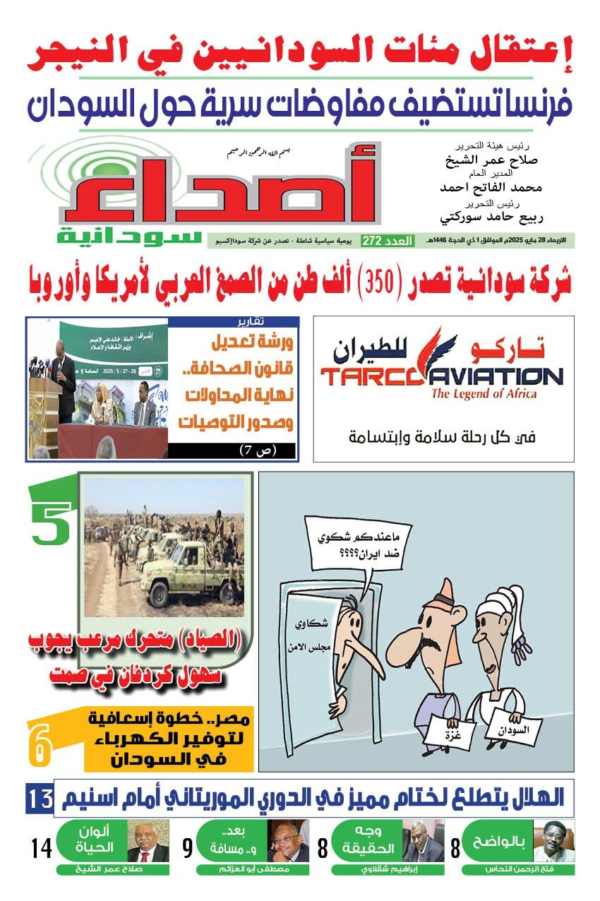 صحيفة اصداء سودانية العدد 272 الصادر يوم الاربعاء 28 مايو 2025