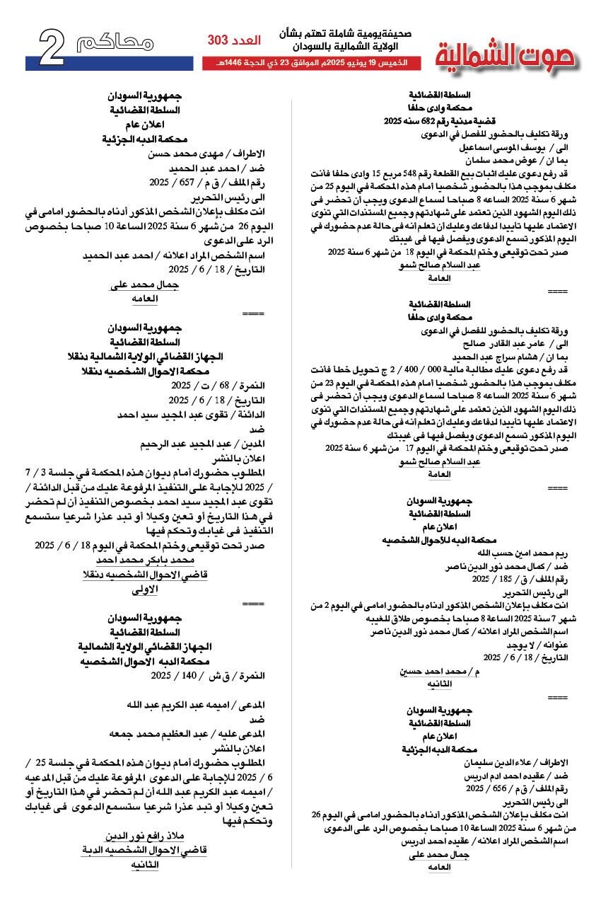 صحيفة صوت الشمالية العدد 303 الصادر بتاريخ 19 يونيو 2025
