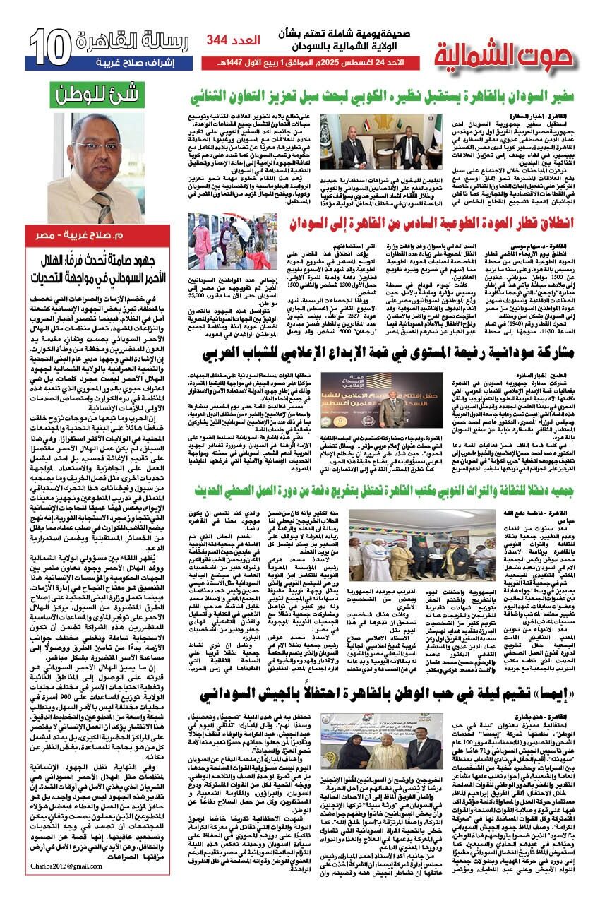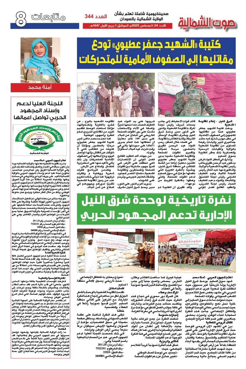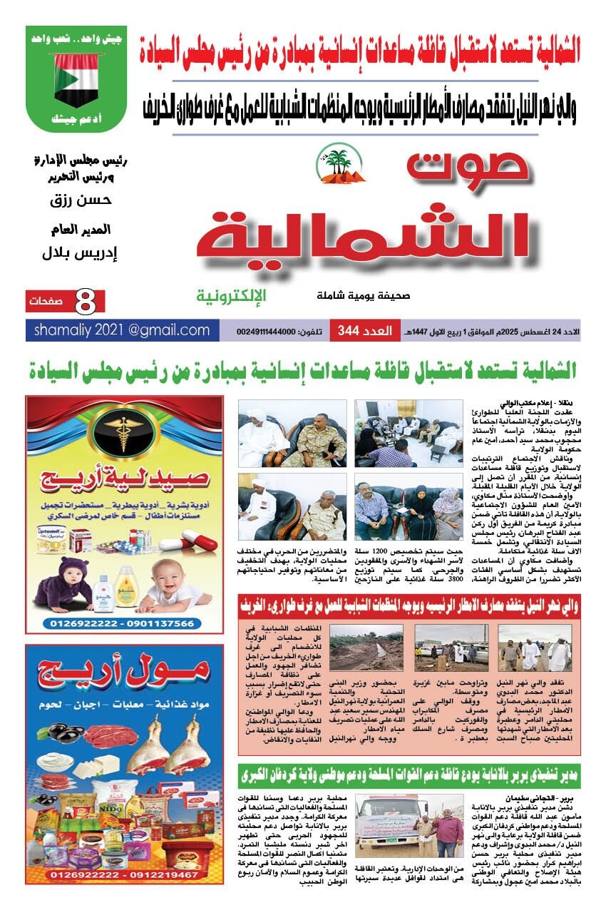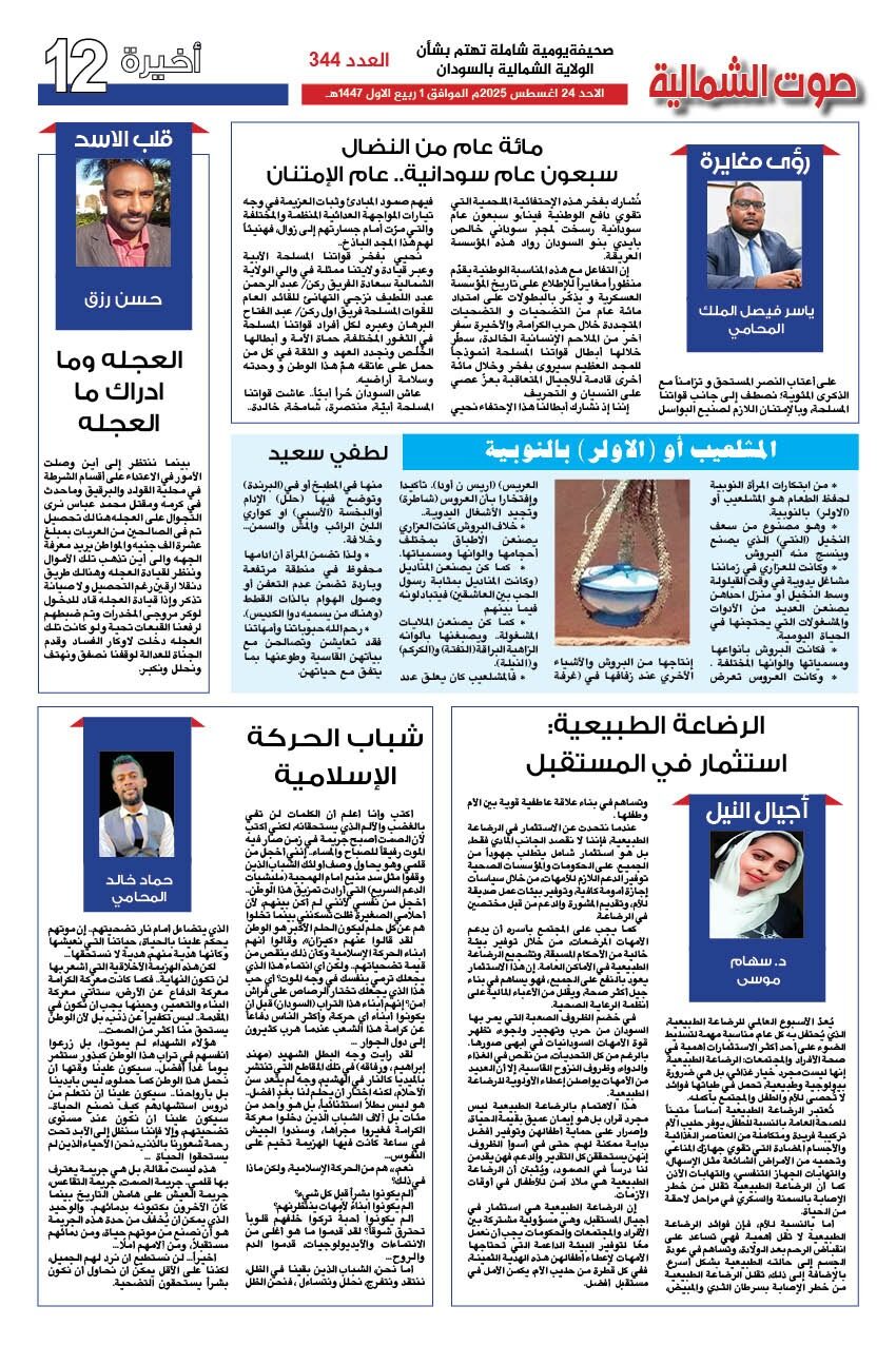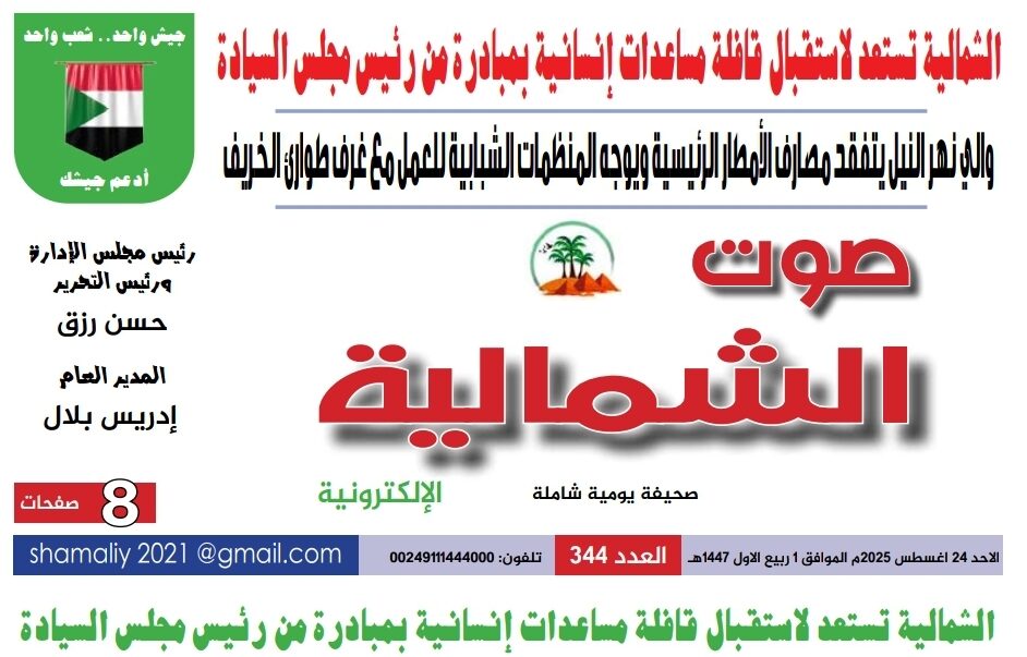 لتصفح صحيفة صوت الشمالية العدد 344 العدد الصادر يوم الأحد 24 أغسطس 2025، مستخدما تطبيق Google drive، أضغط هنا ……!!