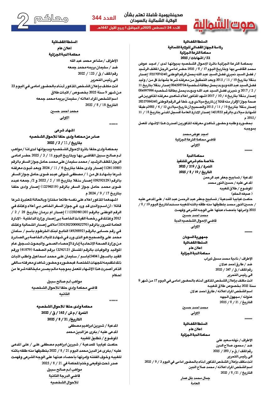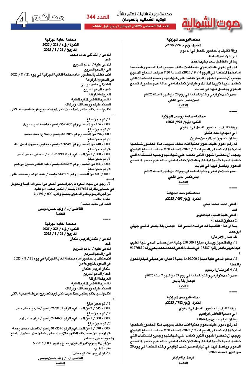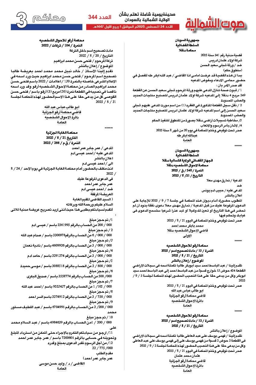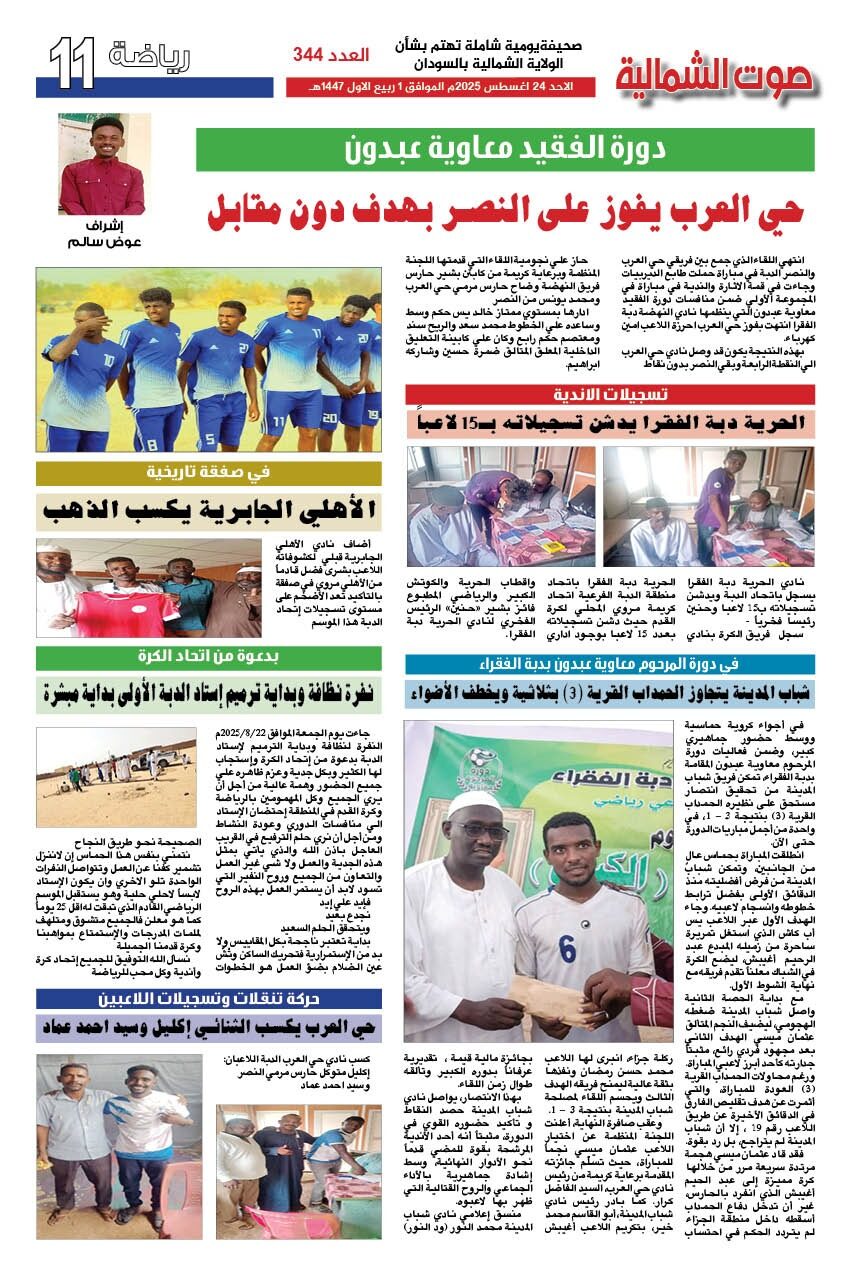 لتصفح صحيفة صوت الشمالية العدد 344 العدد الصادر يوم الأحد 24 أغسطس 2025، مستخدما تطبيق Google drive، أضغط هنا ……!!