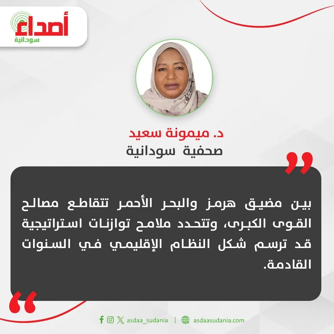 *وفي هذا السياق، تبرز أهمية الدول المطلة على البحر الأحمر في المعادلة الجيوسياسية الجديدة، ومن بينها السودان، الذي يمتلك موقعًا استراتيجيًا مهمًا على هذا الممر الحيوي. غير أن استمرار الحرب الداخلية في السودان منذ عام 2023 جعلت البلاد تمر بمرحلة من عدم الاستقرار السياسي والأمني، الأمر الذي يثير مخاوف متزايدة من أن يتحول هذا الفراغ إلى عامل جذب للتنافس الدولي أو التدخلات الخارجية في حال تصاعدت أهمية البحر الأحمر كبديل لمضيق هرمز.