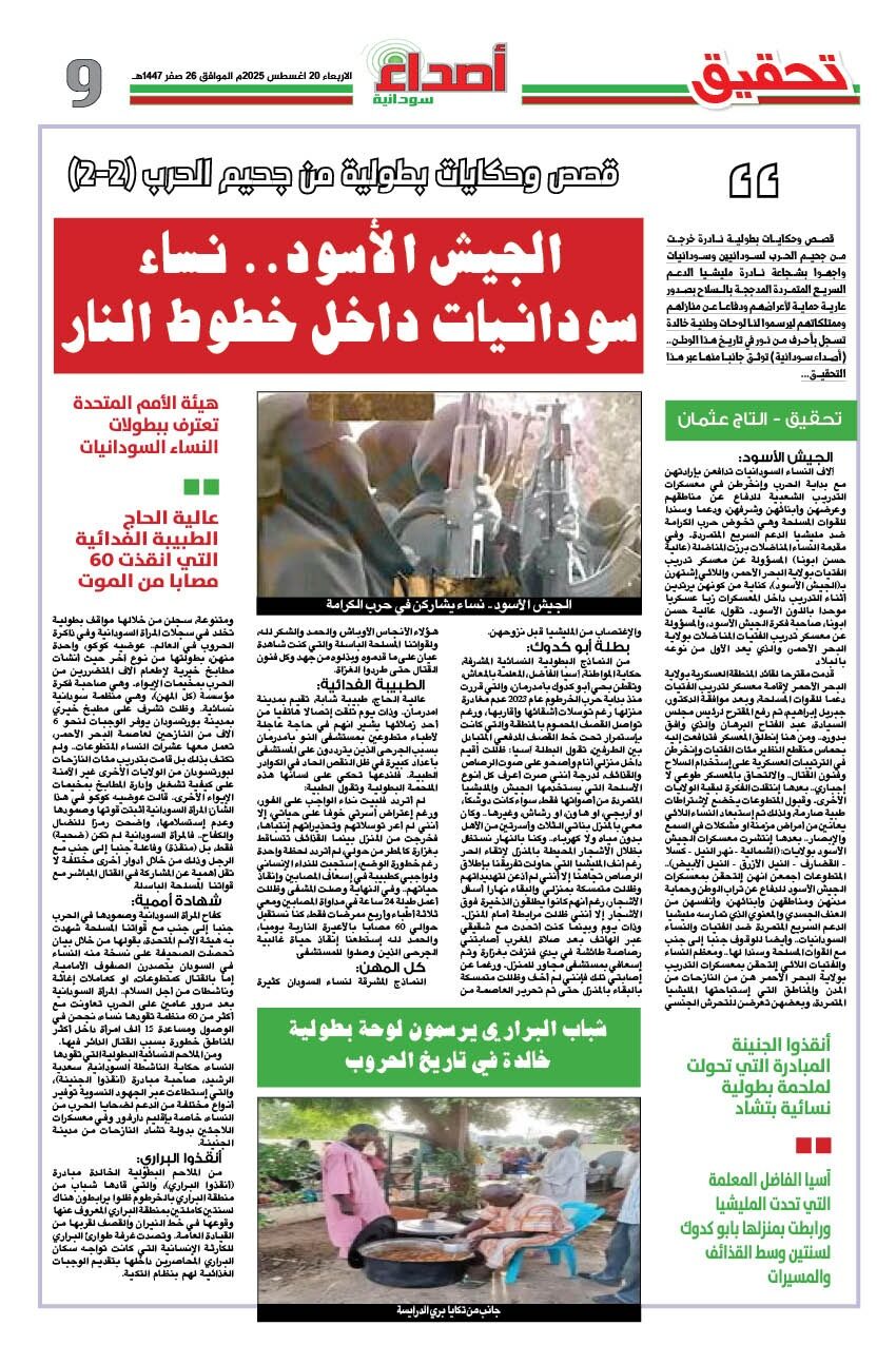 لتصفح صحيفة اصداء سودانية العدد 147 الصادر يوم الأربعاء 20 أغسطس 2025، مستخدما تطبيق Google drive ، أضغط هنا ……!!