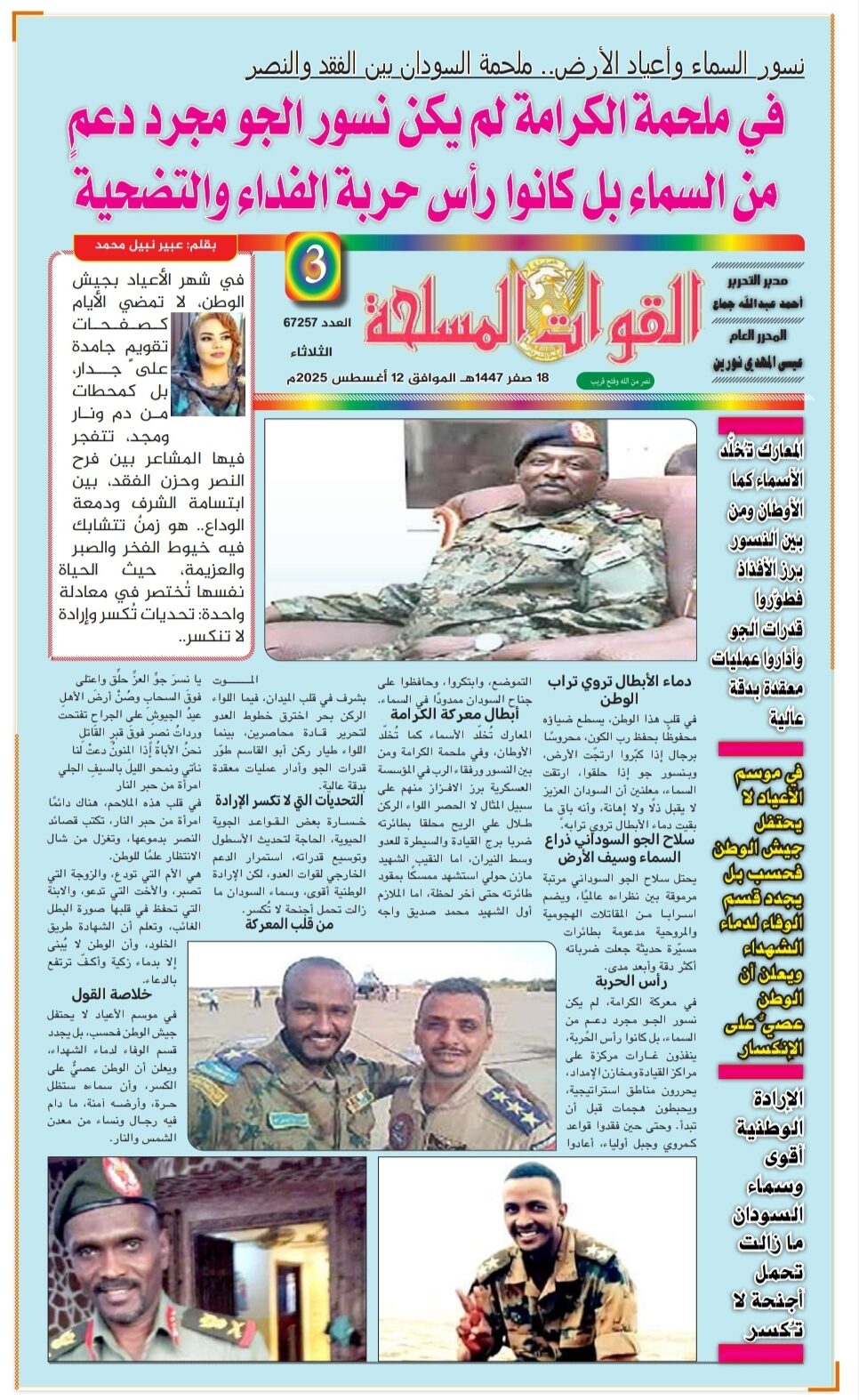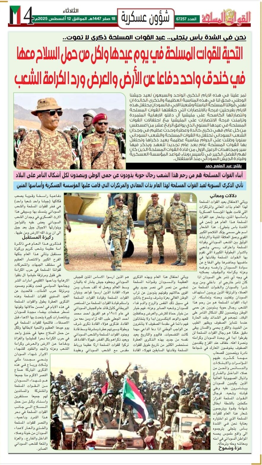 لتصفح صحيفة القوات المسلحة العدد الصادر يوم الثلاثاء 12 اغسطس 2025، مستخدما تطبيق Google drive، أضغط هنا ……!!