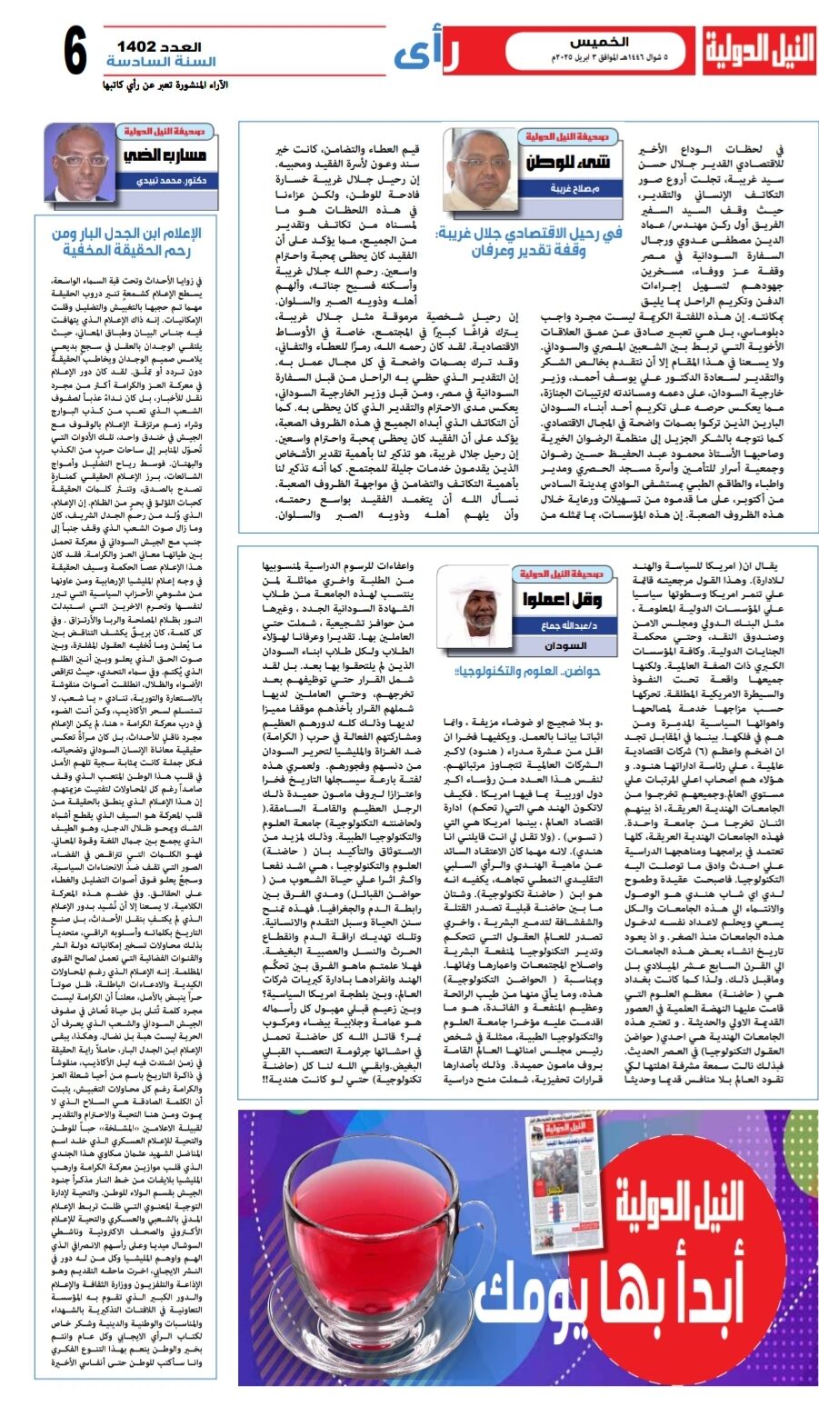 ولا يسعنا في هذا المقام إلا أن نتقدم بخالص الشكر والتقدير لسعادة الدكتور علي يوسف أحمد، وزير خارجية السودان، على دعمه ومساندته لترتيبات الجنازة، مما يعكس حرصه على تكريم أحد أبناء السودان البارين الذين تركوا بصمات واضحة في المجال الاقتصادي.