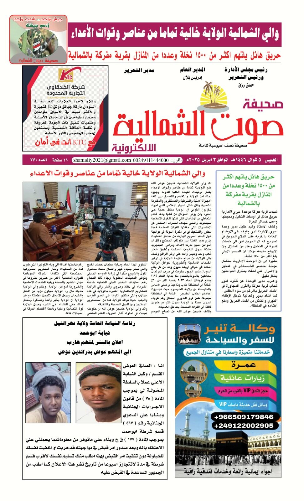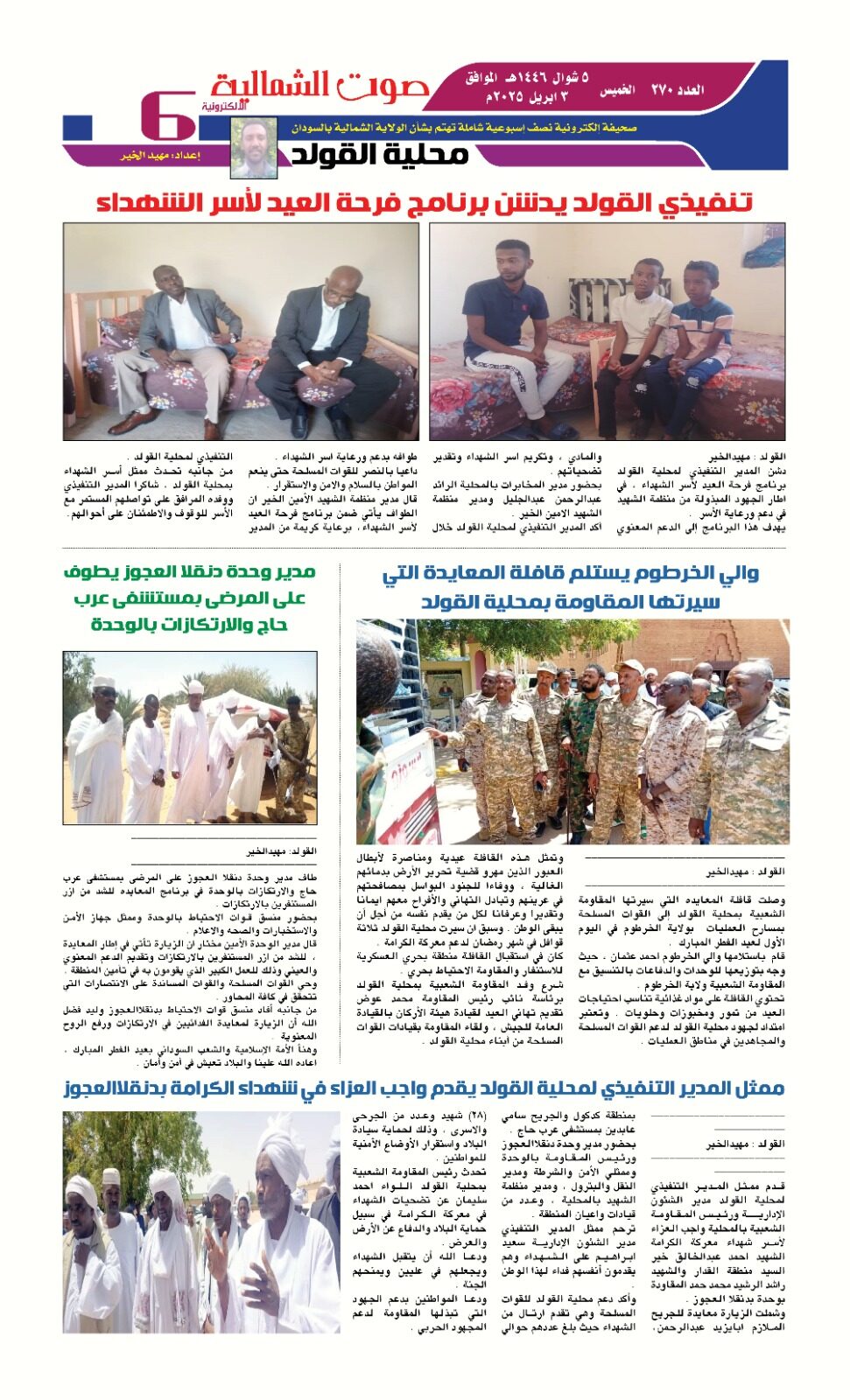 صحيفة صوت الشمالية العدد 270 الصادر يوم الخميس 03 ابريل 2025