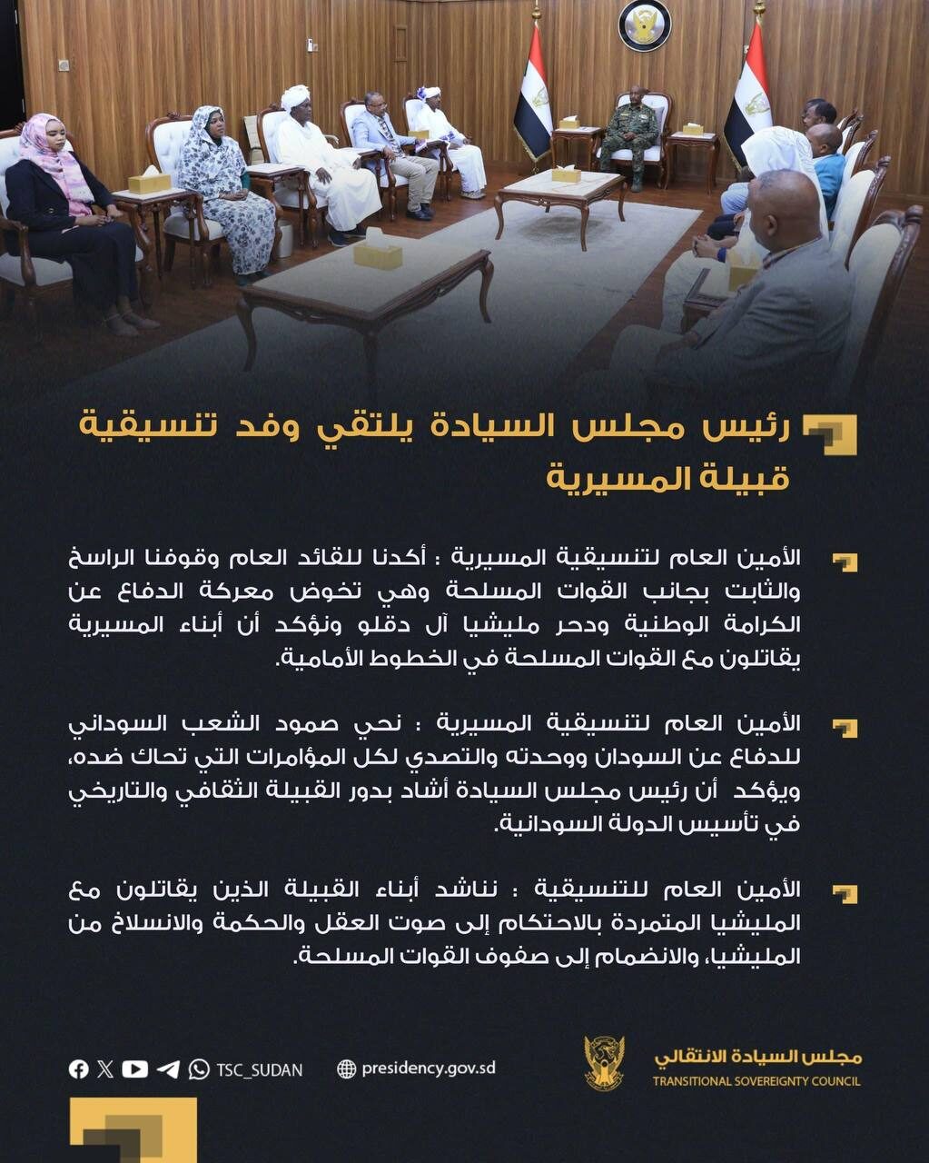 رئيس مجلس السيادة يلتقي وفد تنسيقية قبيلة المسيرية