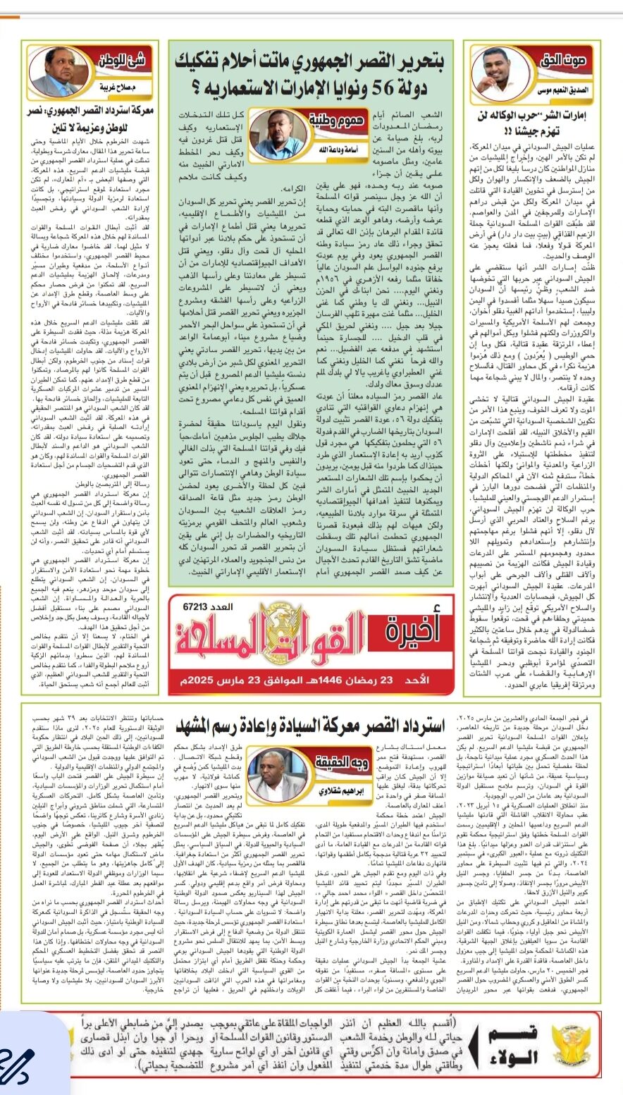 شهدت الخرطوم خلال الأيام الماضية، معارك شرسة وبطولية، تمثلت في عملية استرداد القصر الجمهوري من قبضة مليشيات الدعم السريع. هذه المعركة، التي وصفها البعض بـ “أم المعارك”، لم تكن مجرد استعادة لموقع استراتيجي، بل كانت استعادة لرمزية الدولة وسيادتها، وتجسيدًا لإرادة الشعب السوداني في رفض العبث بمقدراته.